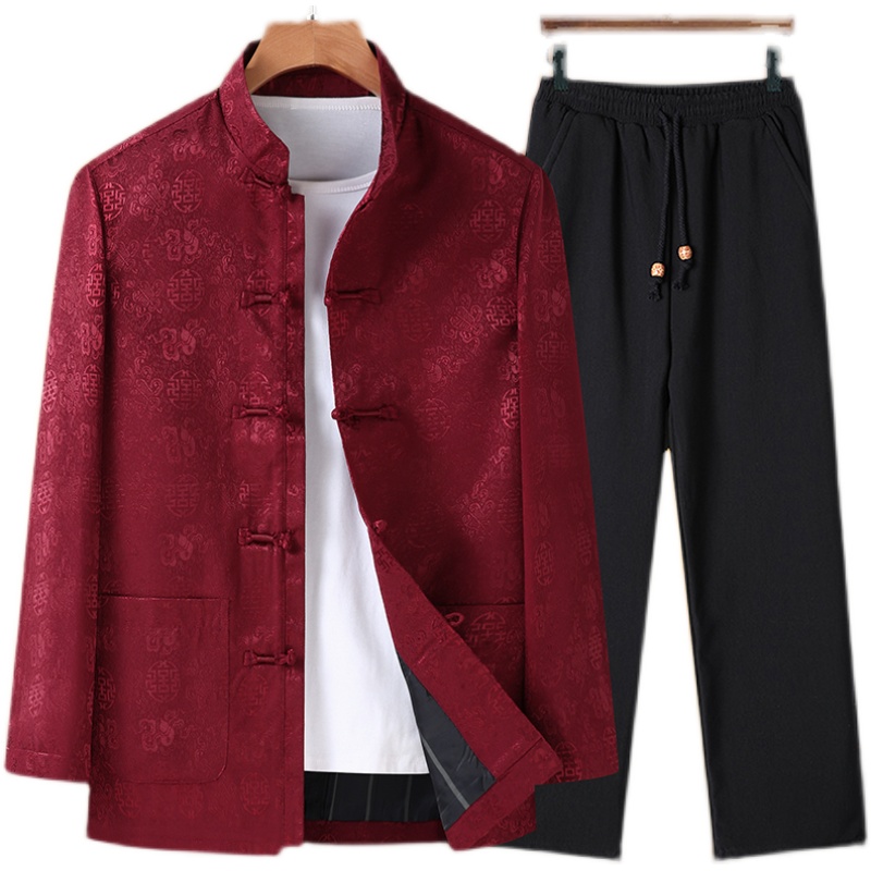 花花公子春秋冬款爷爷过寿长袖夹克唐装男中国风中老年爸爸装汉服