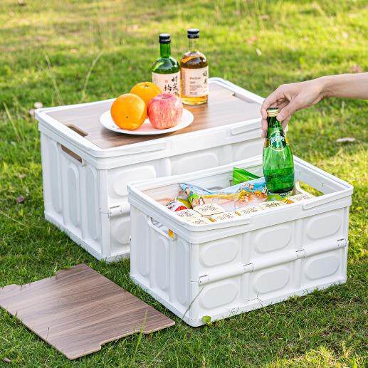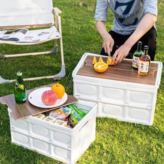 户外露营收纳箱野营木盖置物箱车载后备箱整理箱手提篮野餐折叠箱
