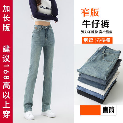 高个子加长175窄版直筒裤女春秋薄款大码高腰弹力显瘦烟管牛仔裤