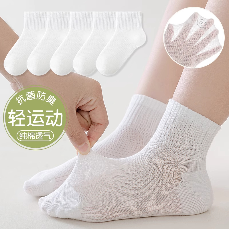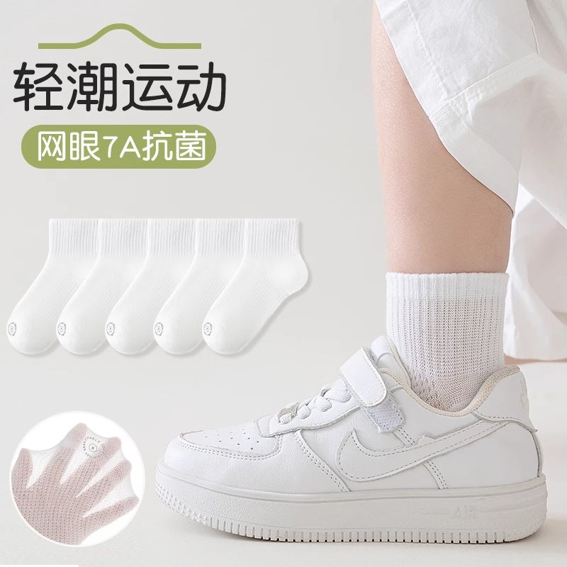 白色儿童袜夏季薄款网眼学生白色袜子纯棉男童女童运动透气中筒袜