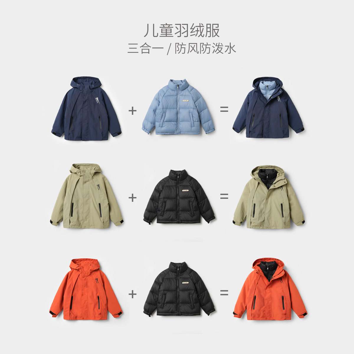 90白鸭绒三合一男大童羽绒服