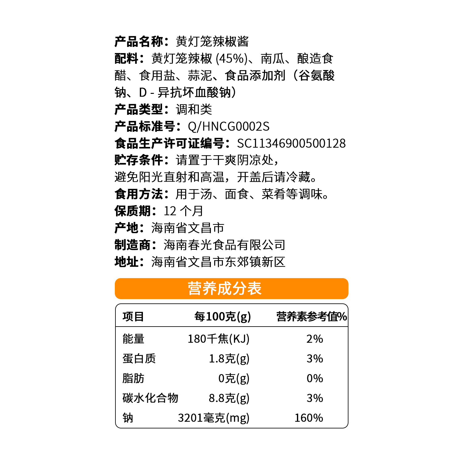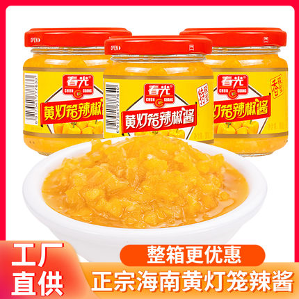 海南特产春光黄灯笼辣椒酱3瓶香辣蒜蓉超特辣黄椒酱剁椒酸汤肥牛