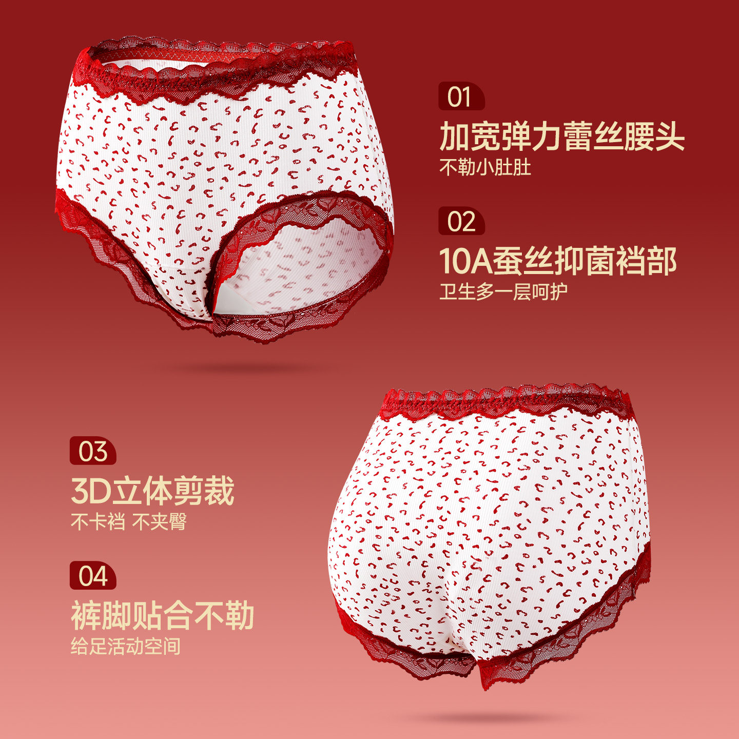 芬腾高腰红色内裤女士三角裤
