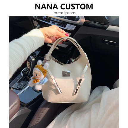 小众软皮菜篮子包包女真皮白色手提包2026新款百搭单肩斜挎水桶包