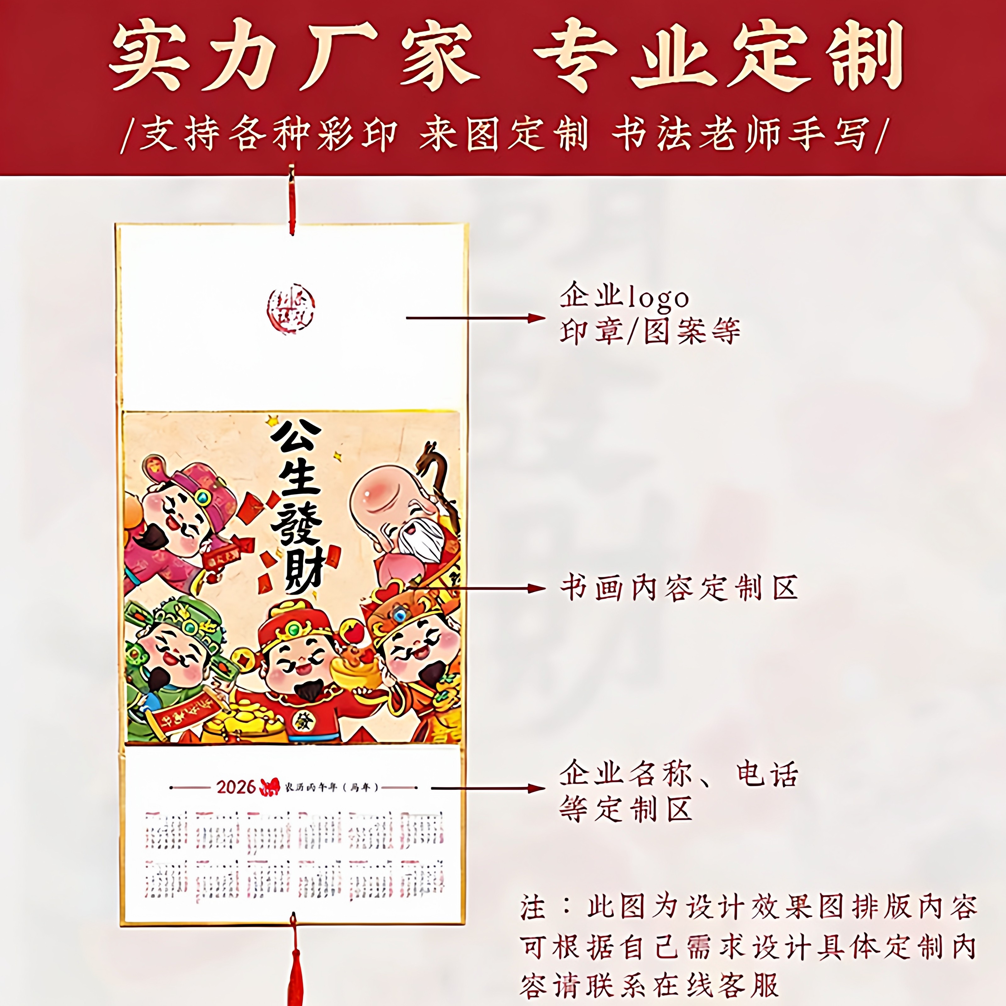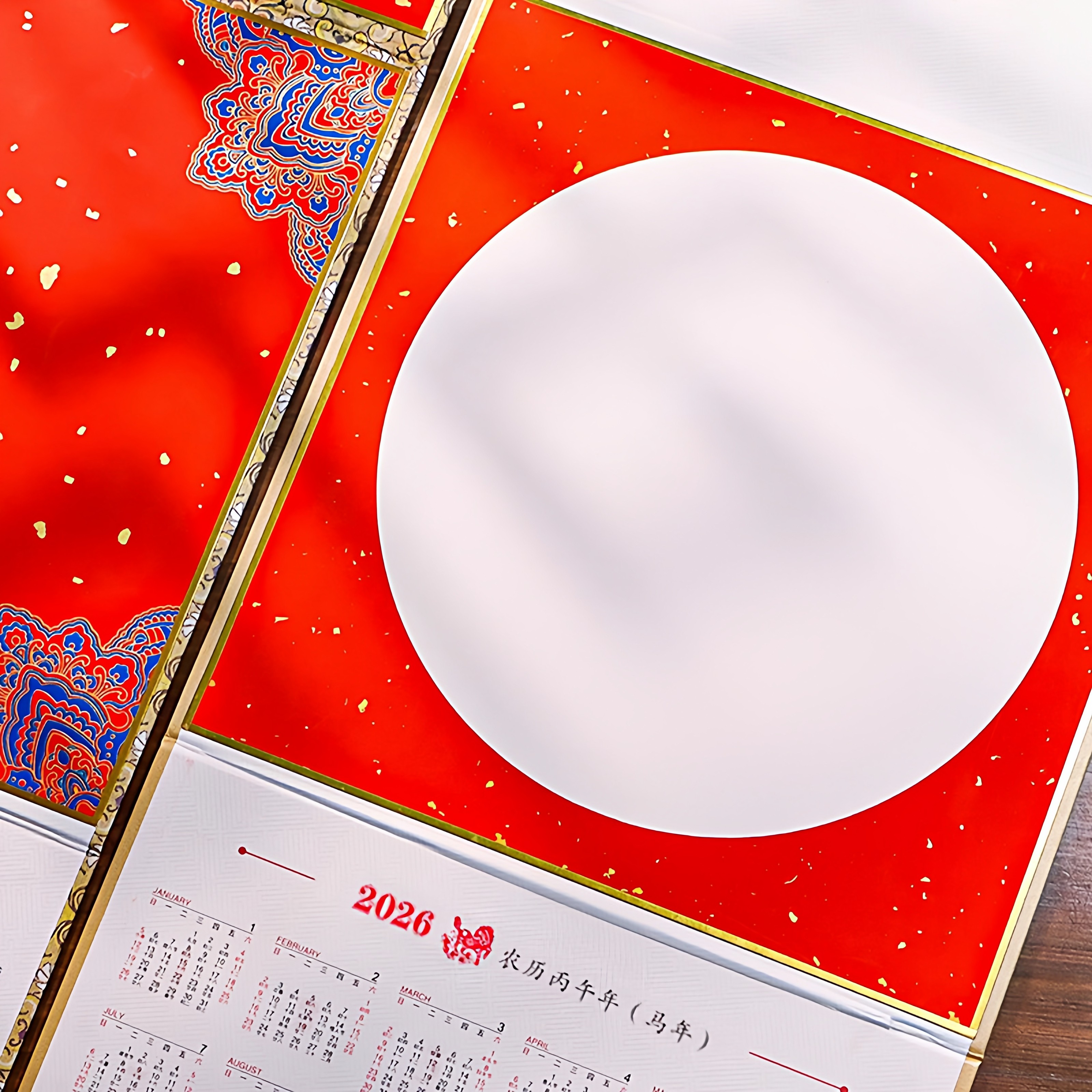 2026年新款空白宣纸挂历折叠日历年历红色卡纸福字洒金红纸半生半熟毛笔字书法专用作品纸国画创作纸定制批发