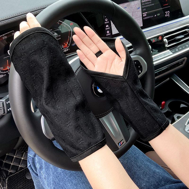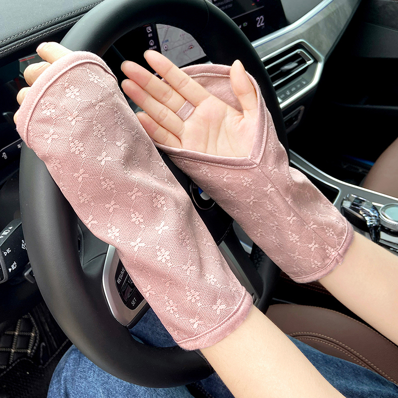夏季防晒手套女开车骑行薄棉布透气短款露指防紫外线半截勾指袖套
