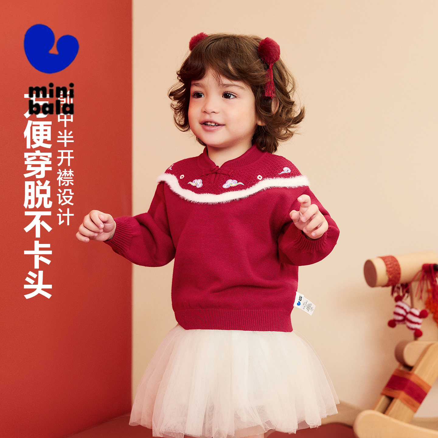 [密扇联名]迷你巴拉女童宝宝贴贴毛衣冬柔软亲肤新中式新年拜年服