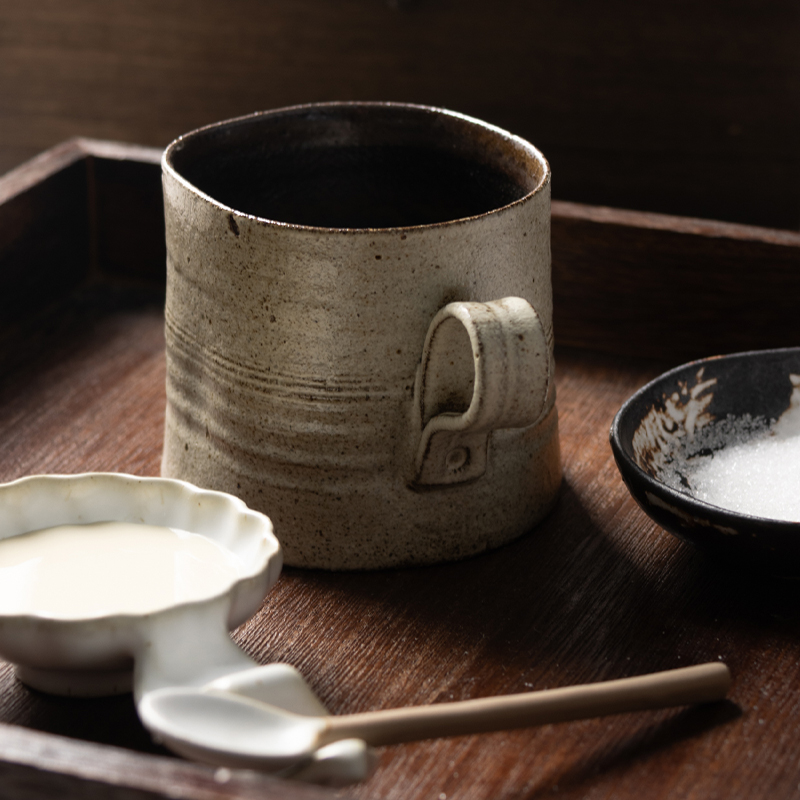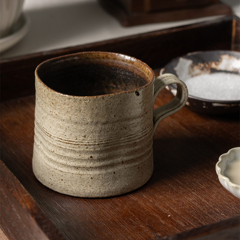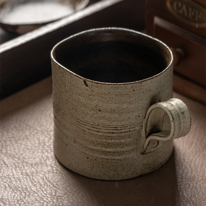莳绘金缮 手工凝香咖啡杯225ml粗陶复古拿铁拉花杯马克杯喝水杯子