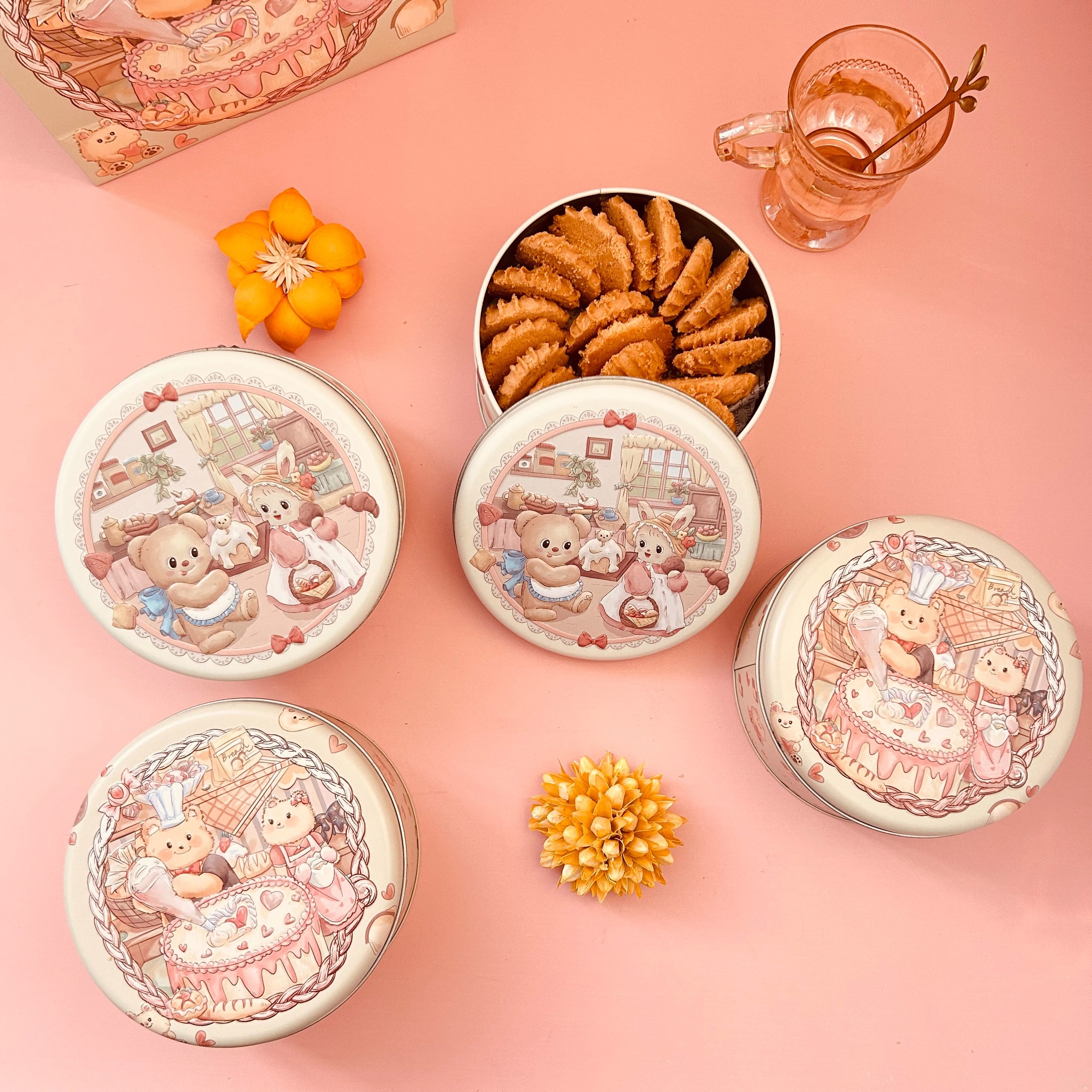 曲奇饼干包装盒可可脆片雪花酥罐圆形空铁盒5寸6寸烘焙千层蛋糕盒