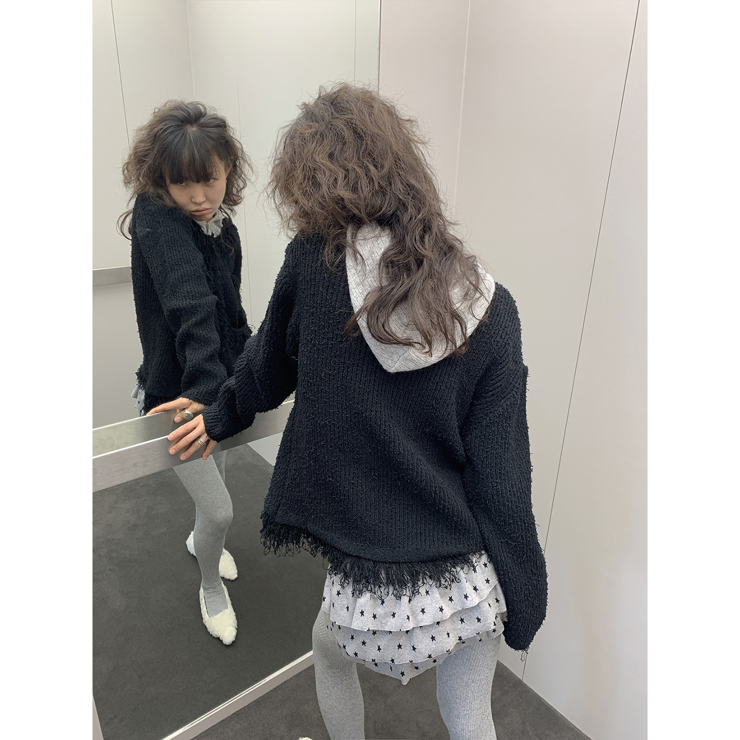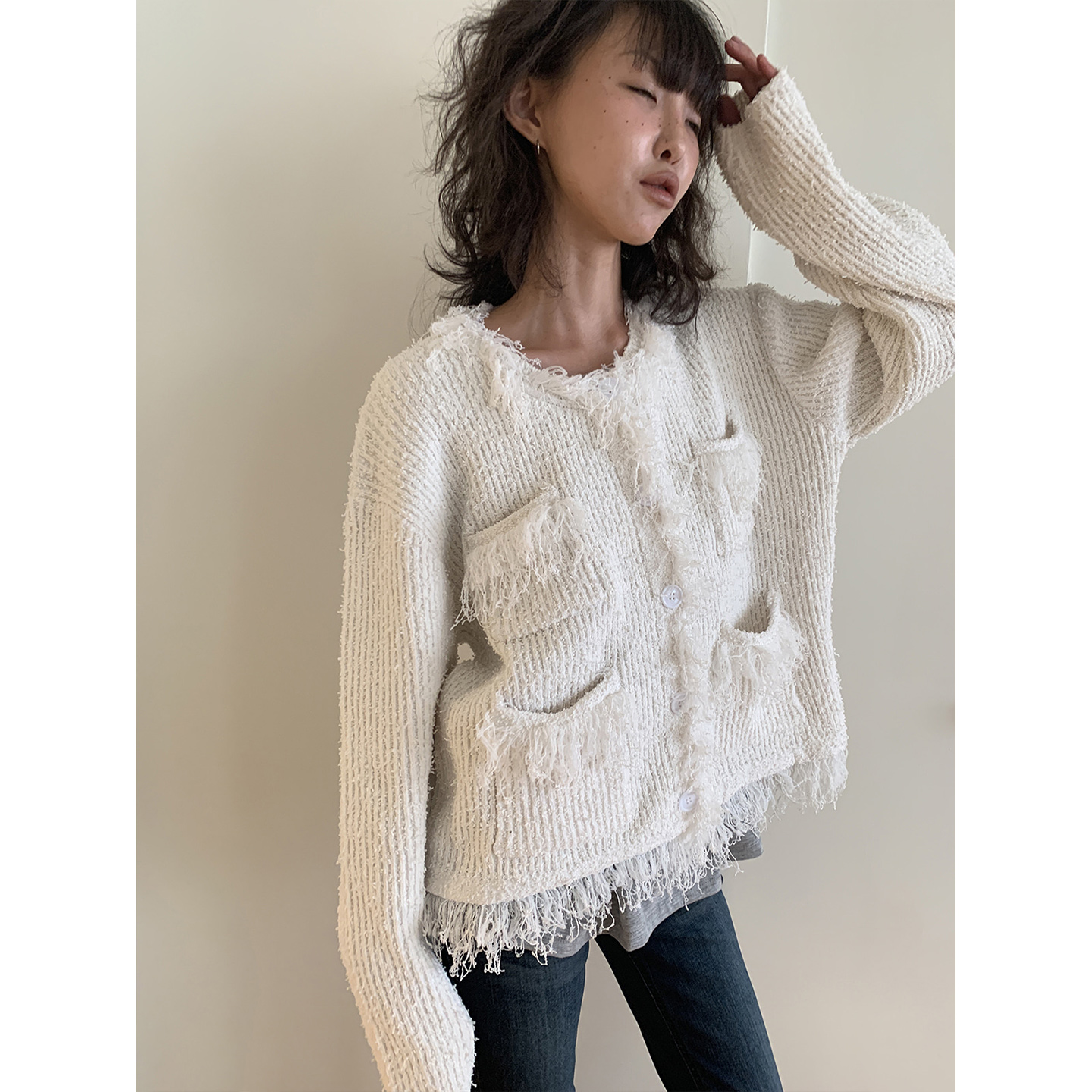鬼鬼家正品韩代东大门秋冬 高级感气质减龄流苏单排扣针织开衫女