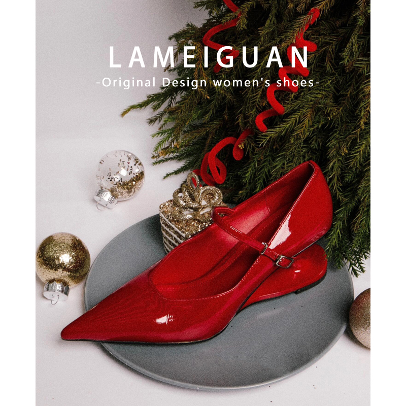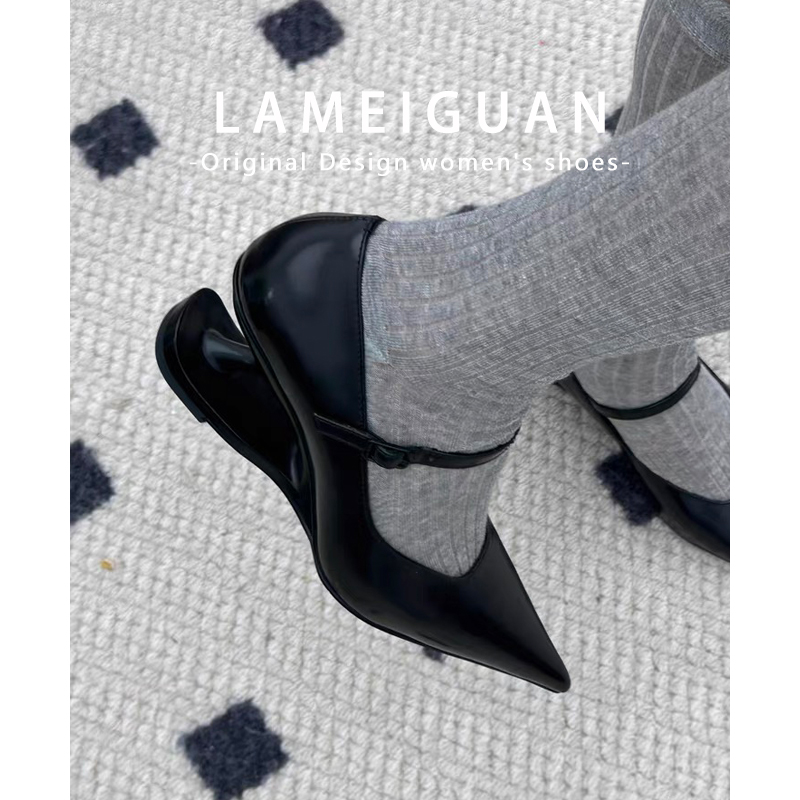 法式小众悬浮异形跟高跟鞋女红色婚鞋2025新款气质玛丽珍尖头单鞋