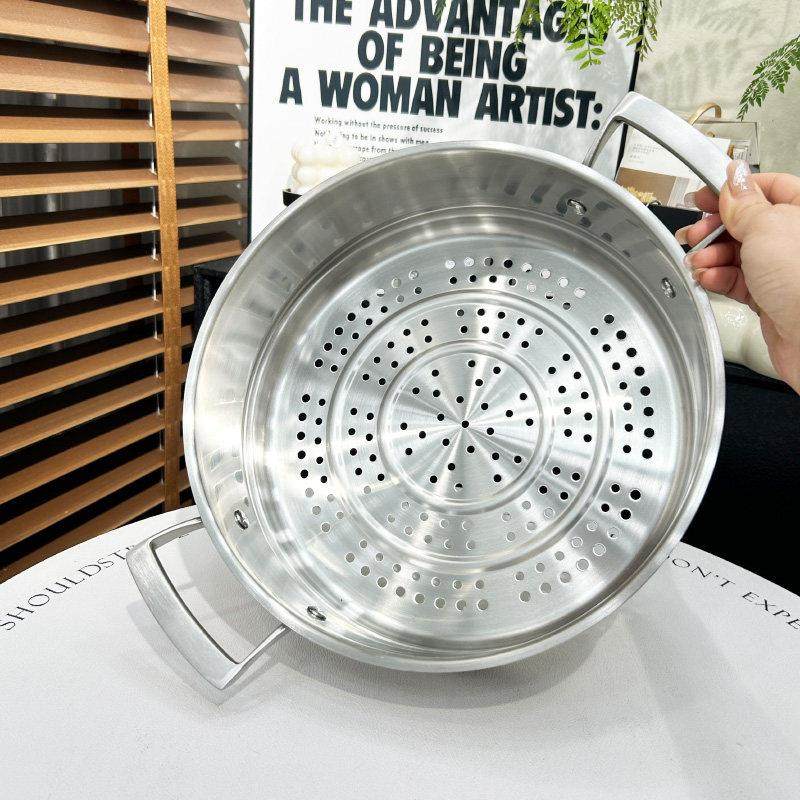 出口316不锈钢三层钢火锅焖锅蒸锅汤锅炖锅带蒸笼大容量28cm