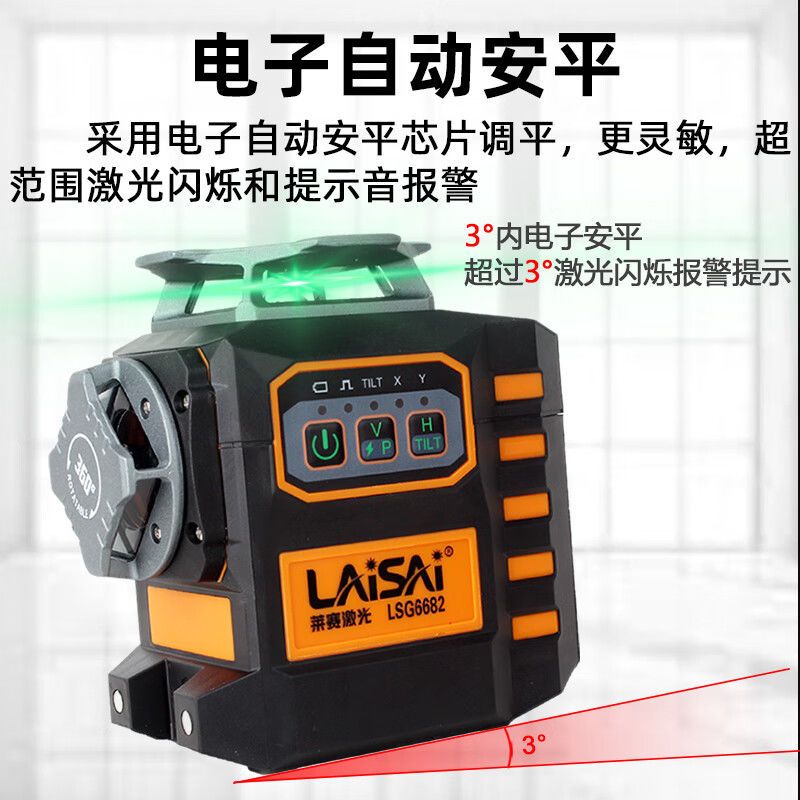 莱赛激光12线LSG6682水平仪绿光电子调平贴地墙抹灰打点新款正品