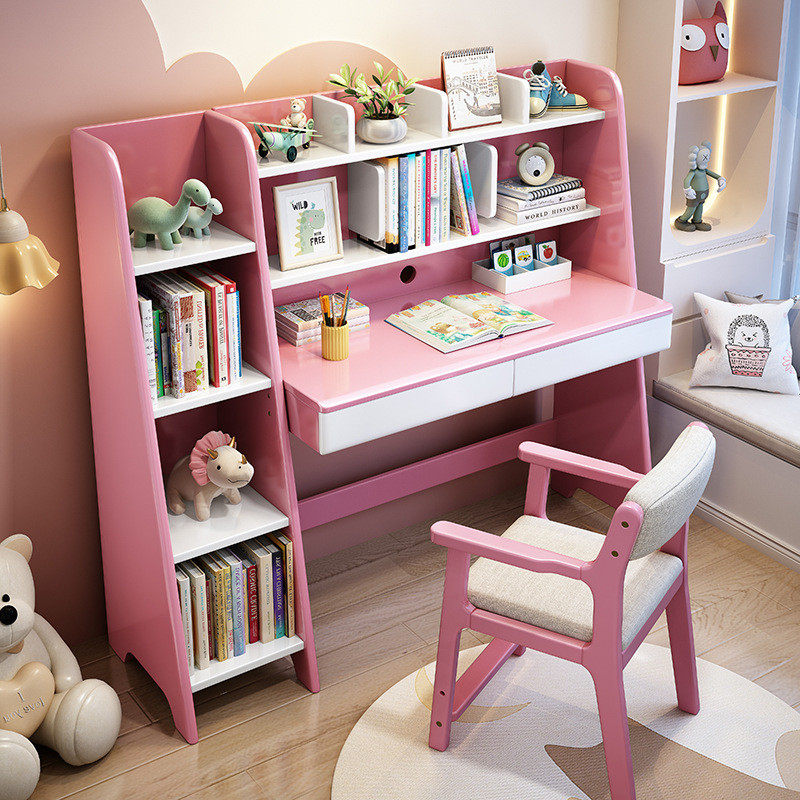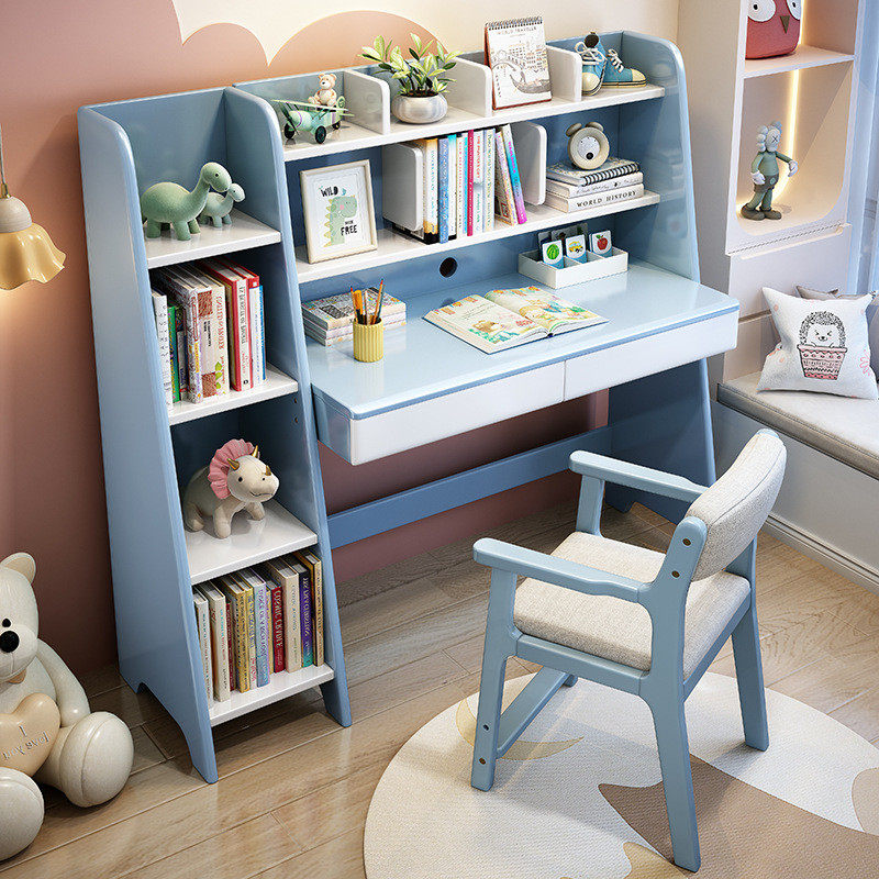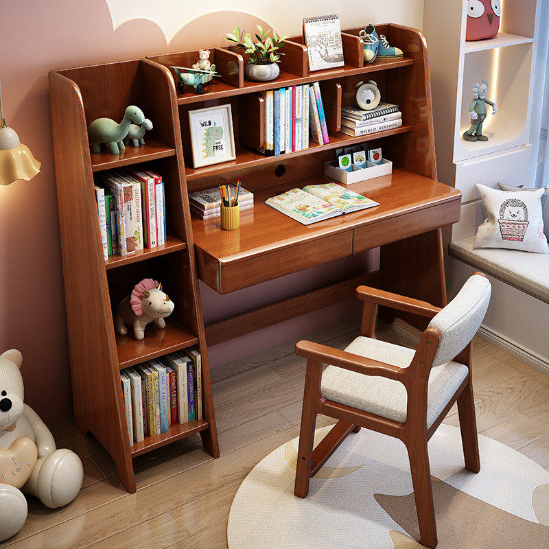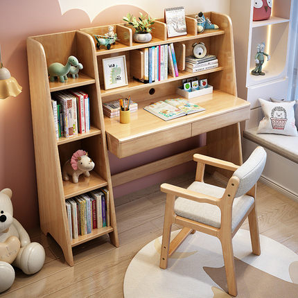 儿童书桌书架一体家用男孩实木学习桌带储物书柜小学生写字桌组合