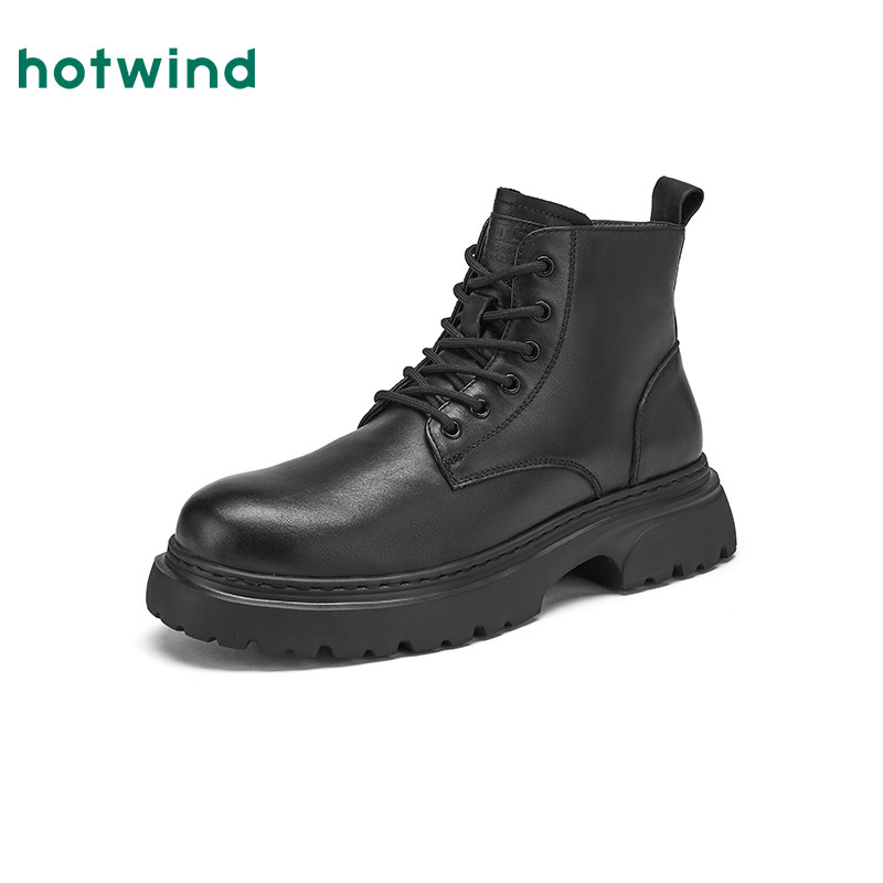 热风男鞋2025年冬季新款男士英伦风厚底马丁靴百搭户外黑色休闲靴