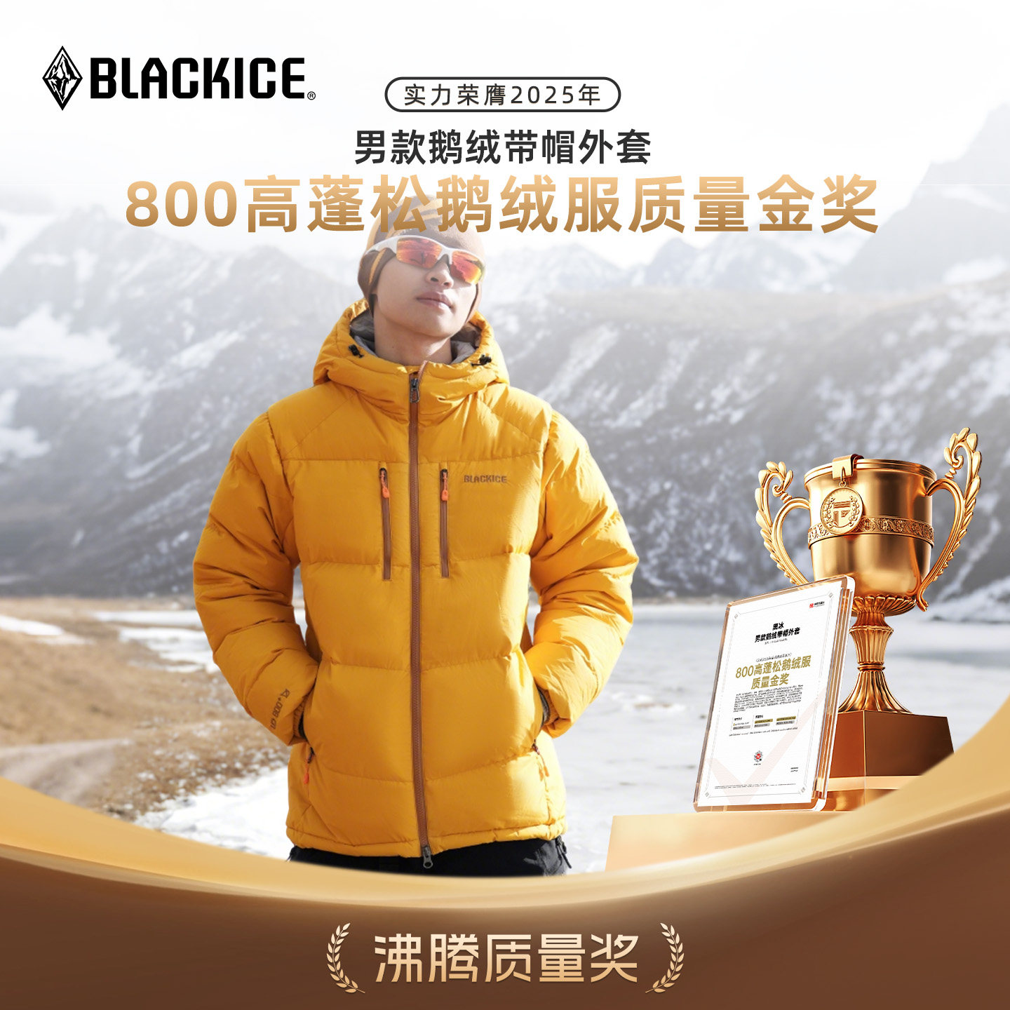 黑冰抗寒户外男款防风保暖连帽羽绒服800蓬松鹅绒羽绒衣外套8528