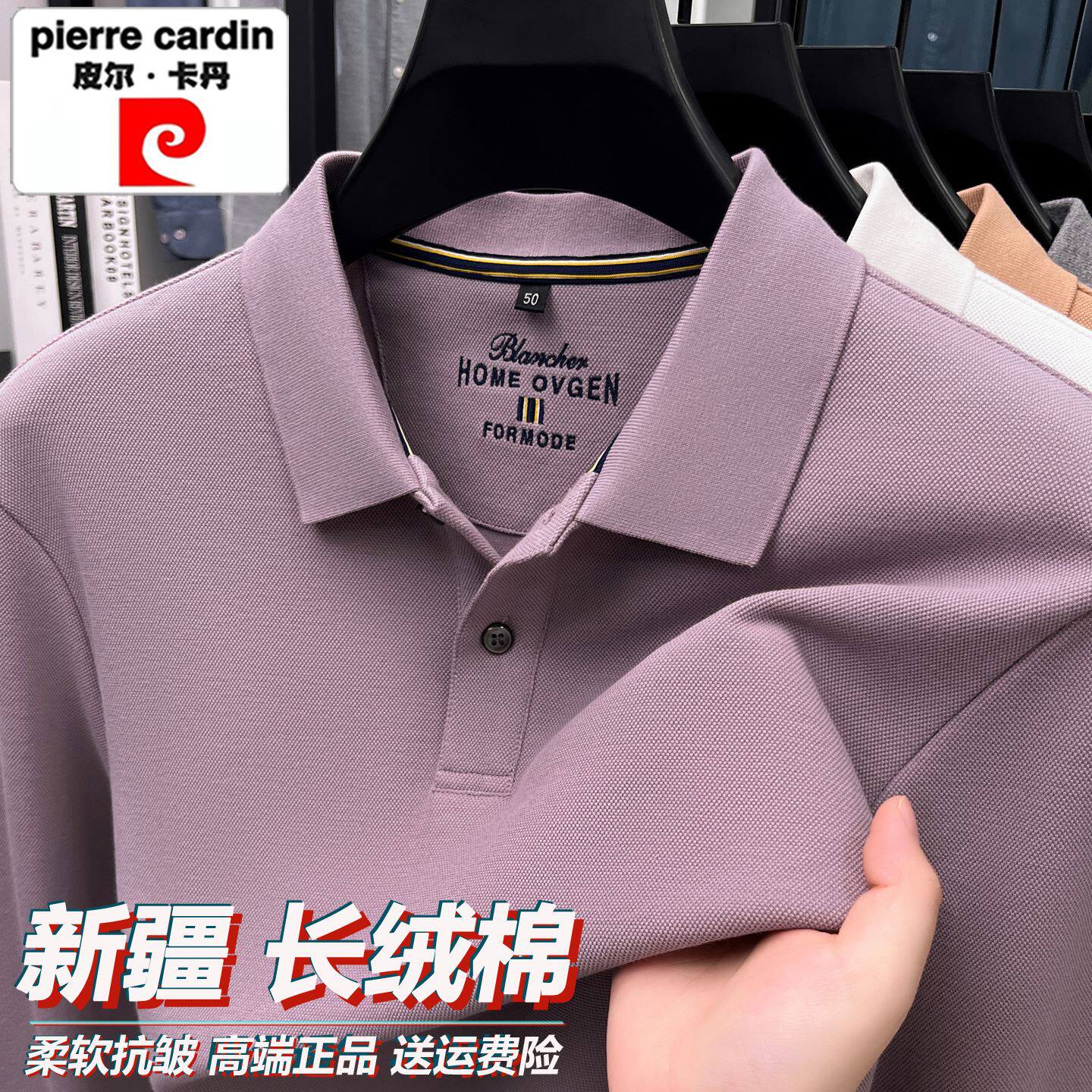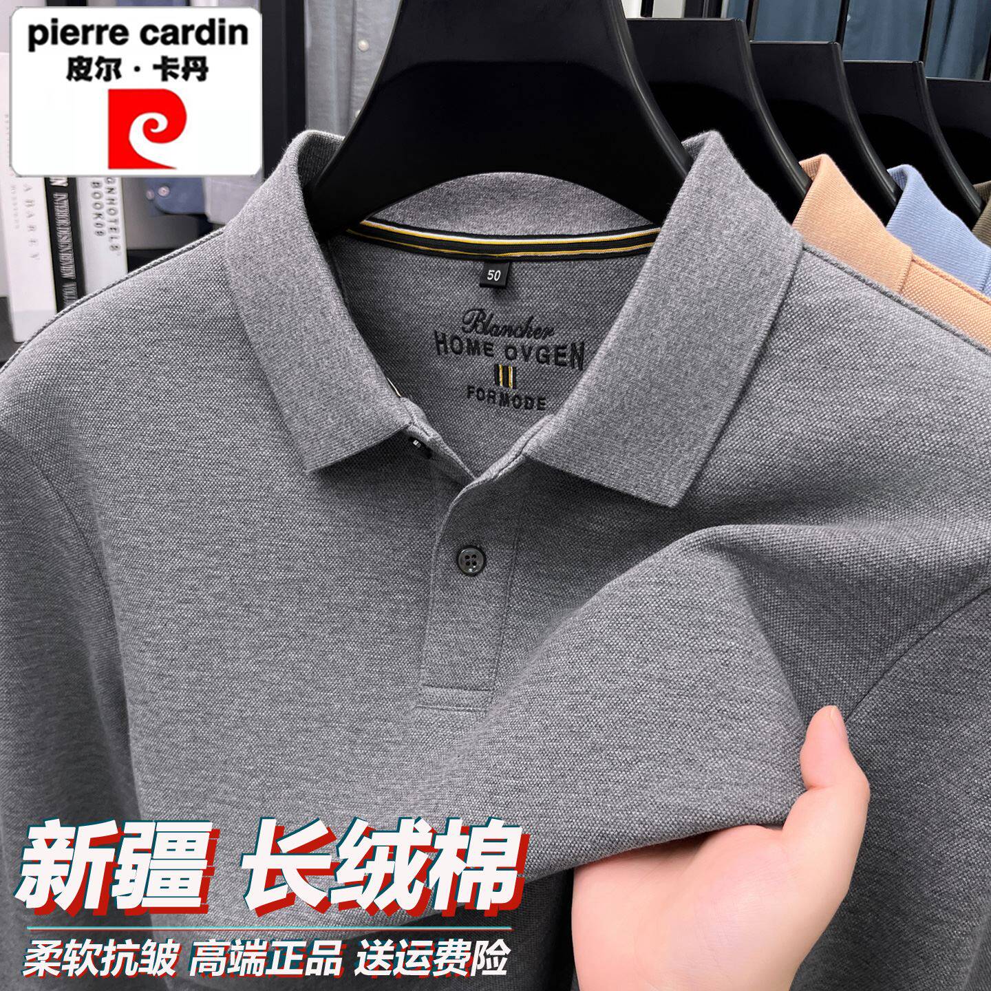 皮尔卡丹100纯棉翻领长袖