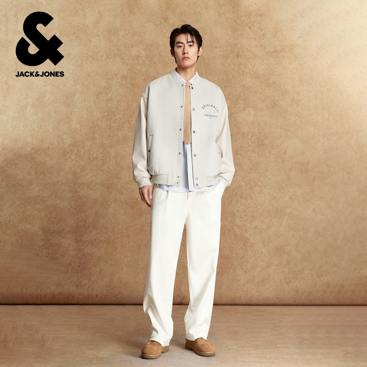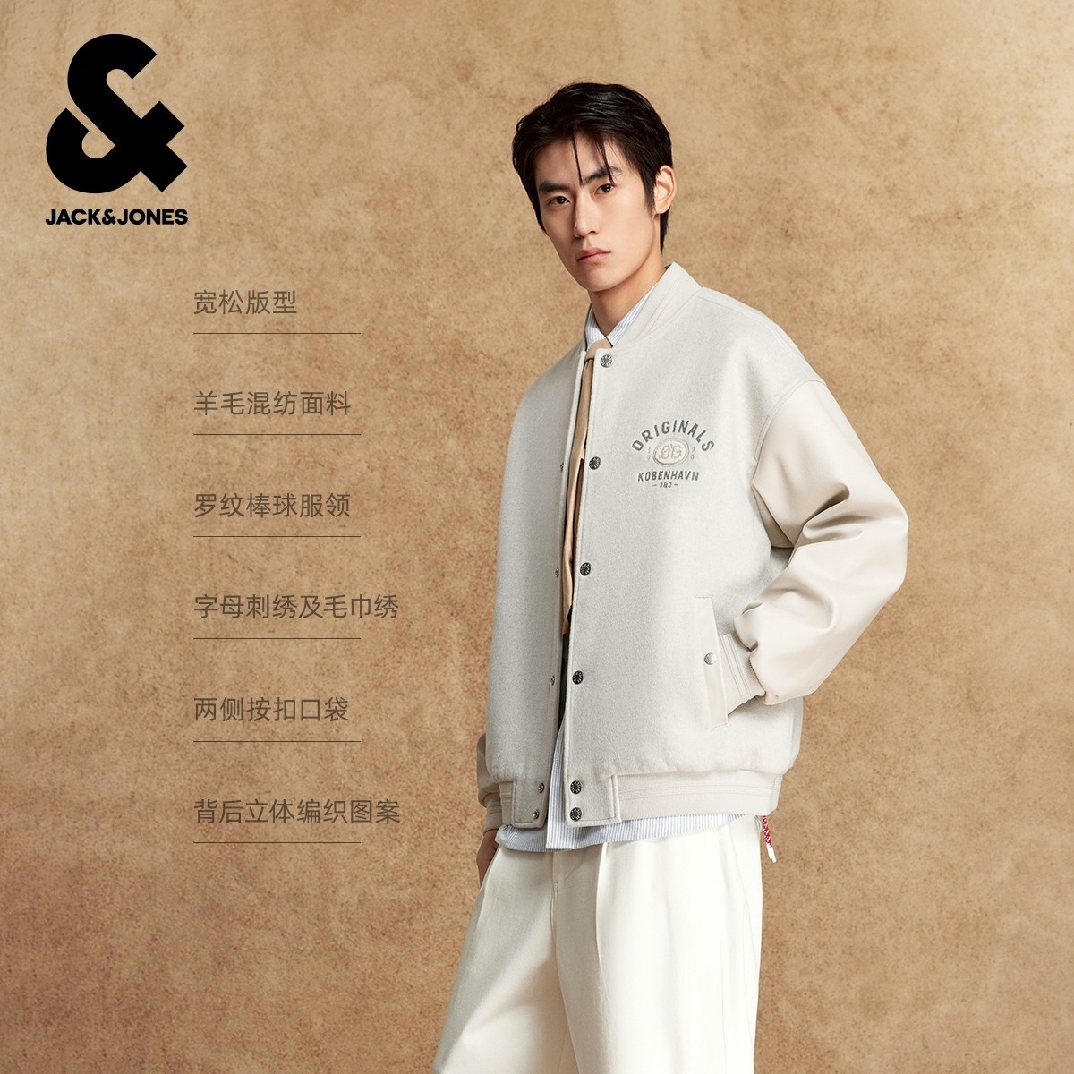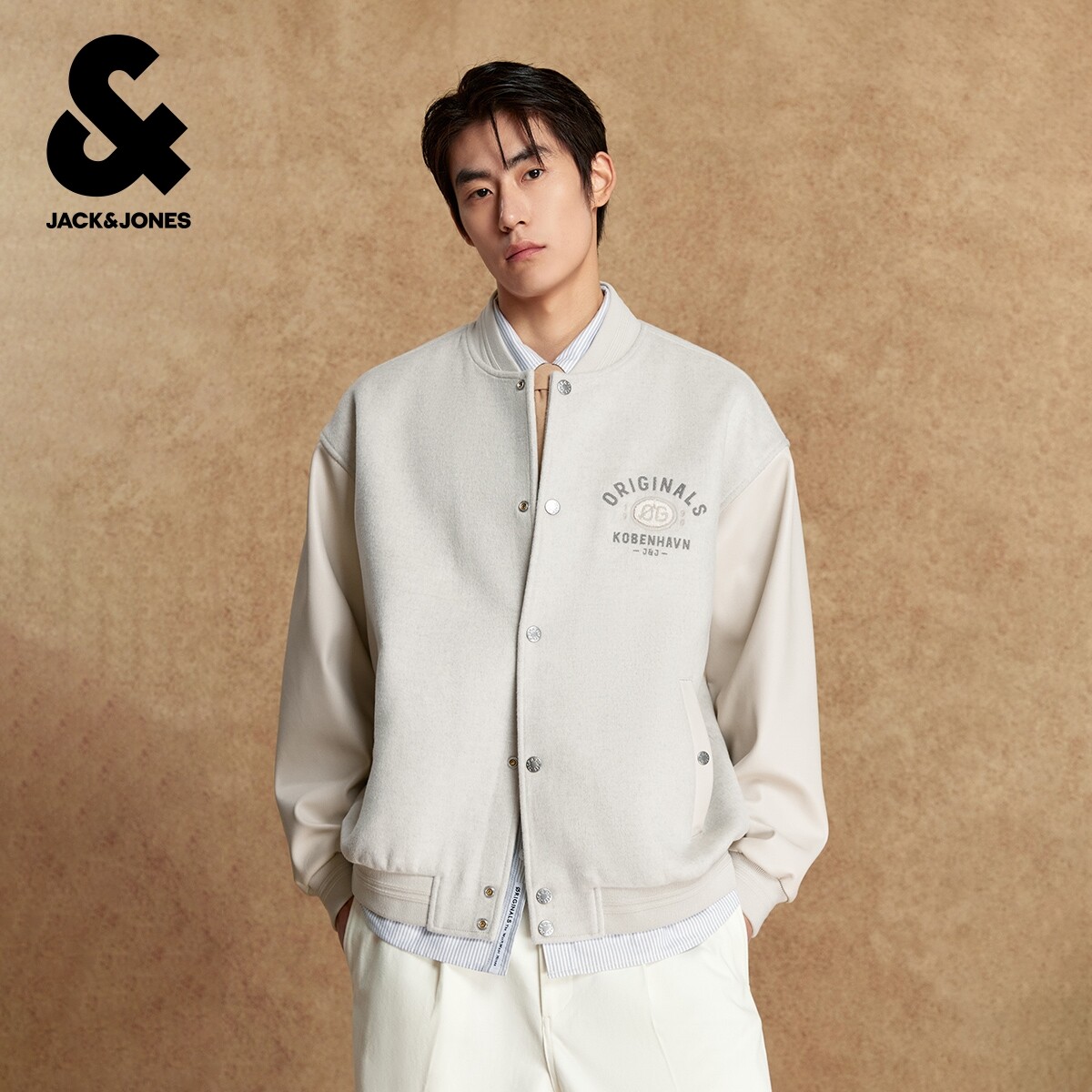 杰克琼斯2025年秋冬新款男装毛呢大衣时尚百搭外套贴布刺绣上衣