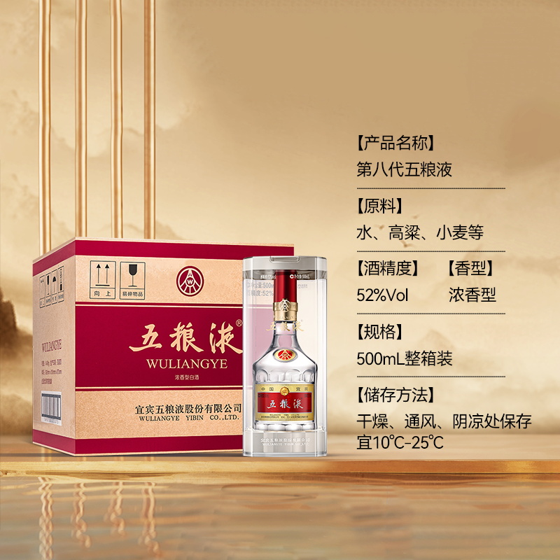 【官方授权】第八代五粮液普五52度浓香型500ml*6瓶原箱发货礼袋