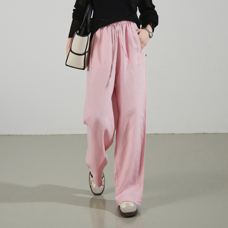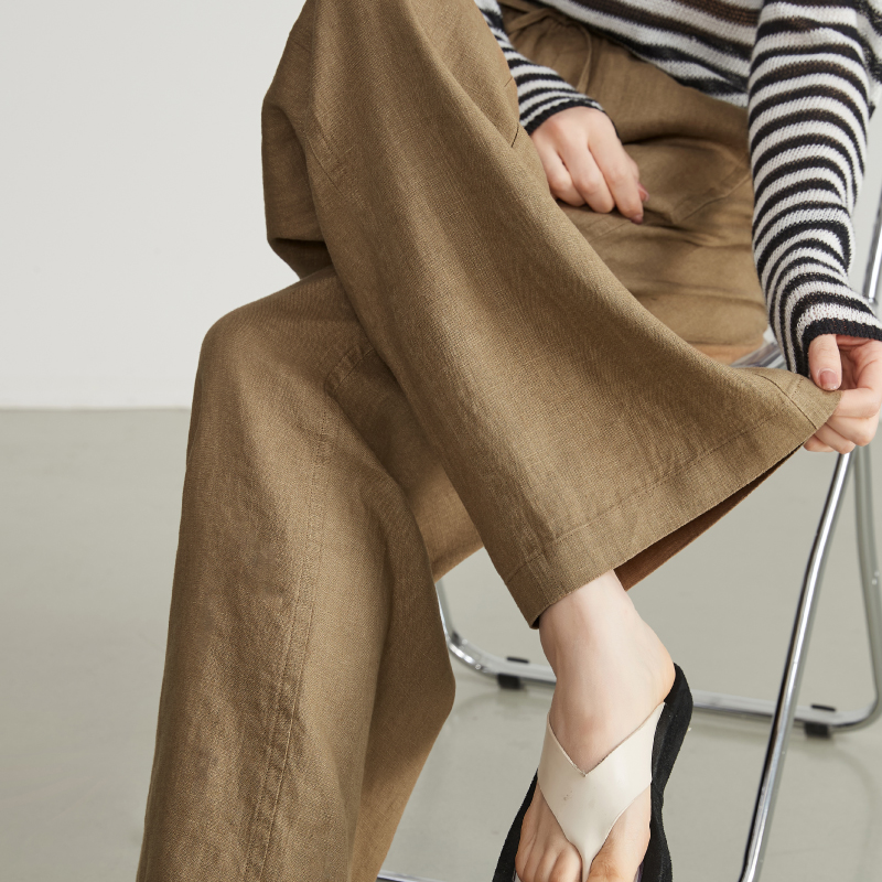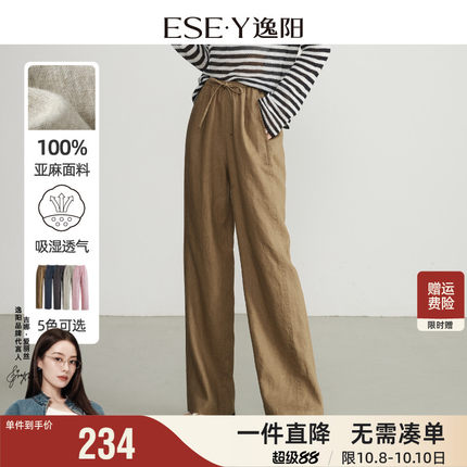 逸阳100%亚麻宽松高腰阔腿裤