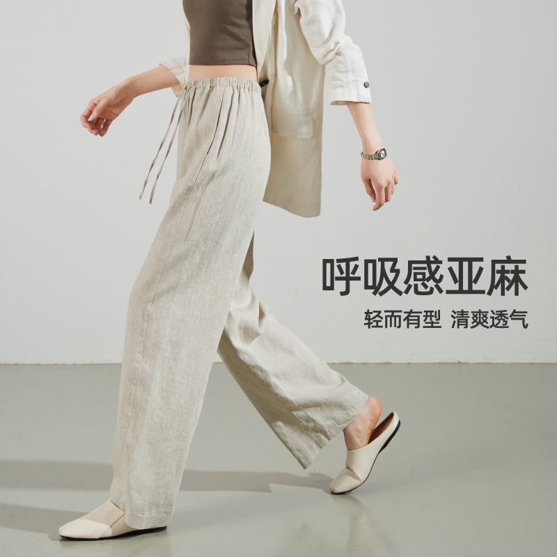 逸阳100%亚麻凉感直筒阔腿裤女2025夏季薄款高腰宽松休闲白色裤子