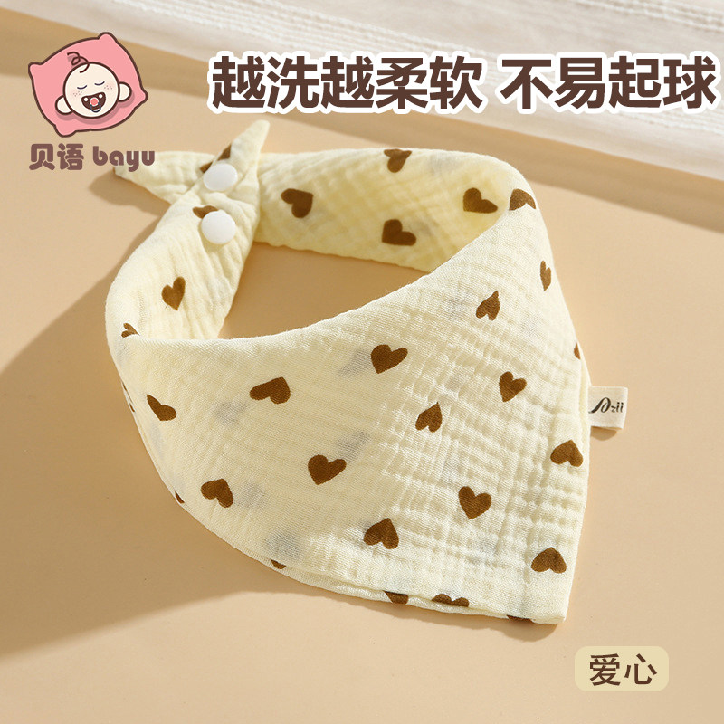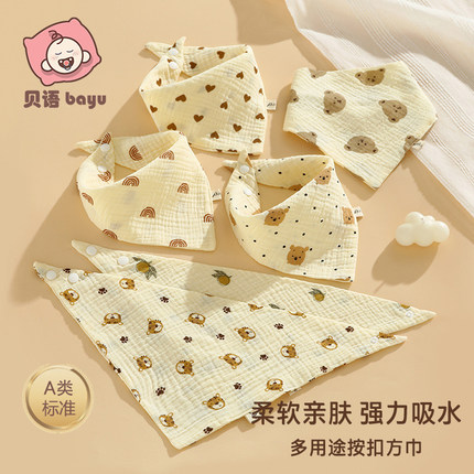 婴儿口水巾新生宝宝三角巾纯棉a类防吐奶围嘴柔软纱布按扣可调节