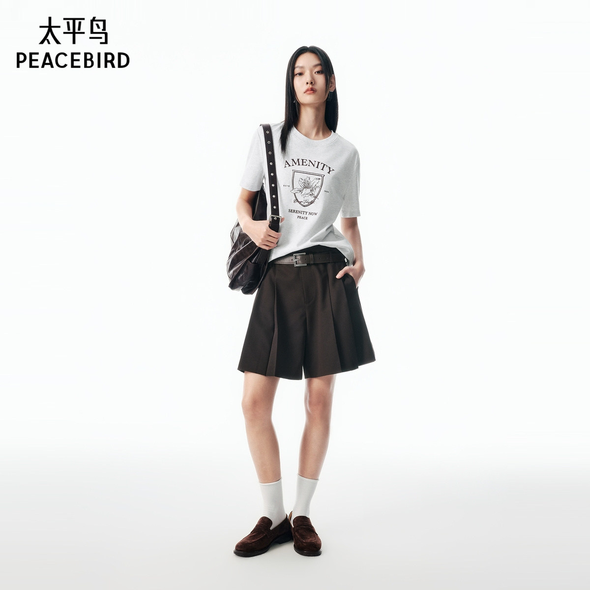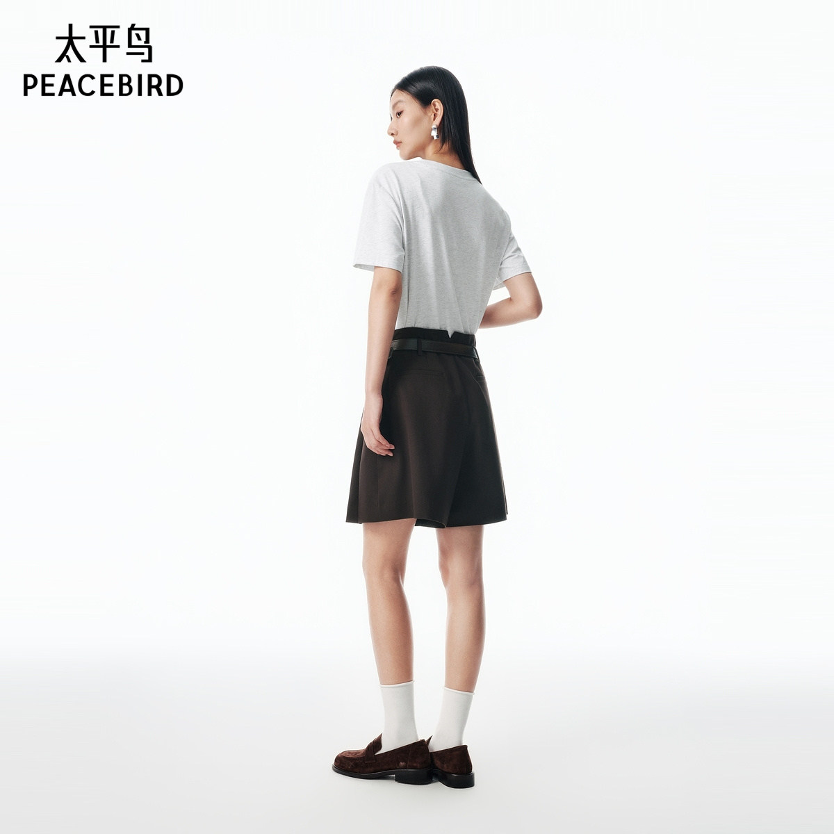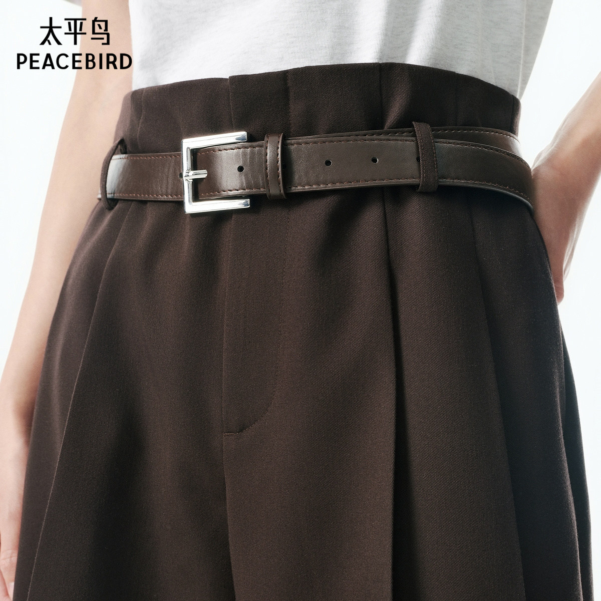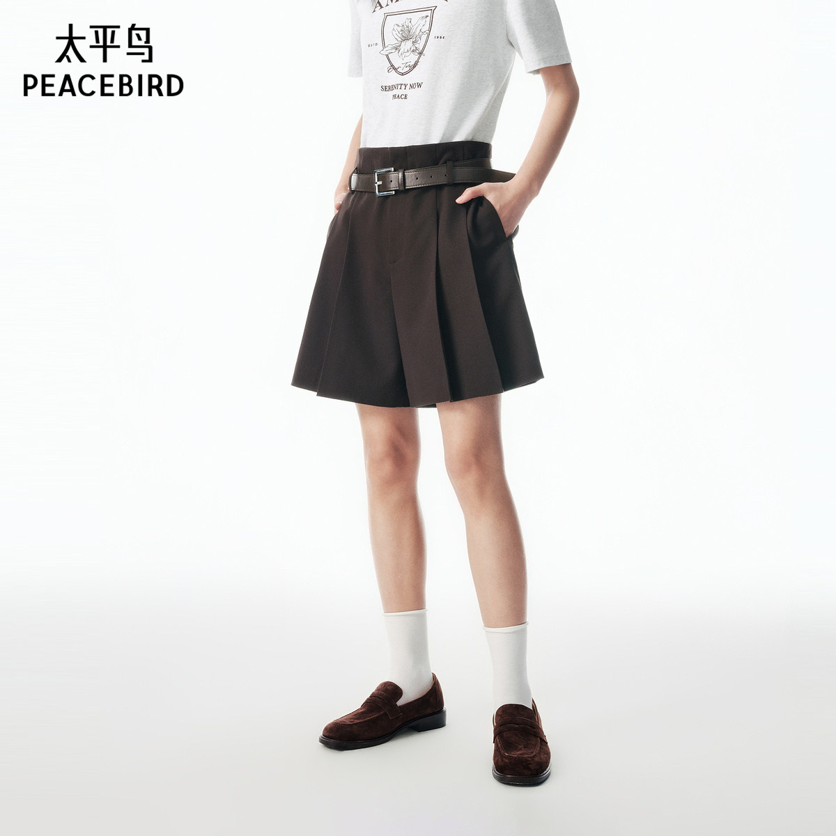太平鸟商场同款附腰带阔腿短裤女