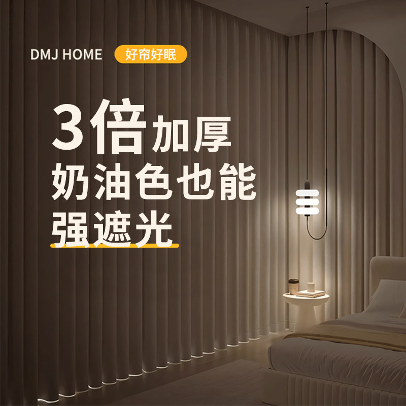 全遮光窗帘100不透光卧室高级感客厅飘窗隔音隔热2025新款法式