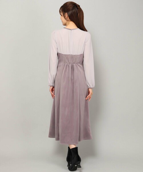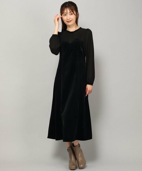 misch masch日单春秋轻熟女天鹅绒拼接长款连衣裙淑女装