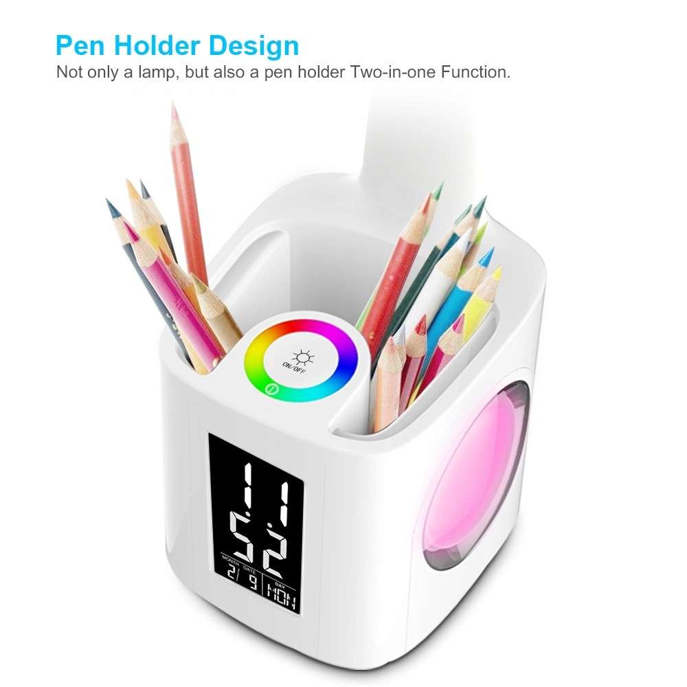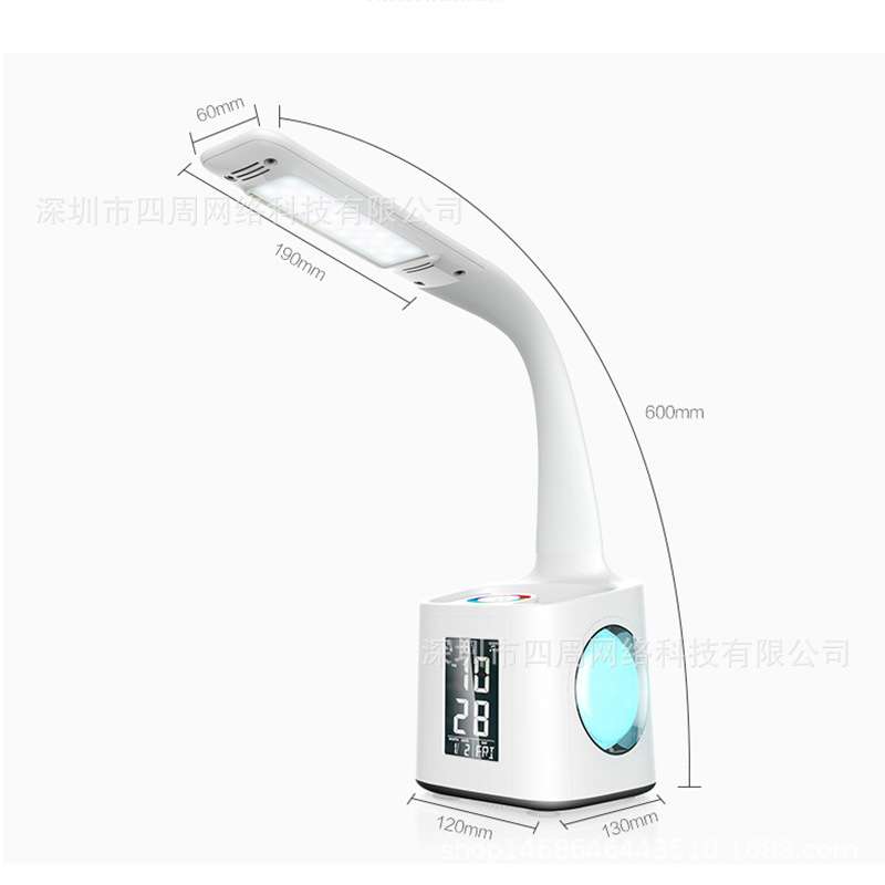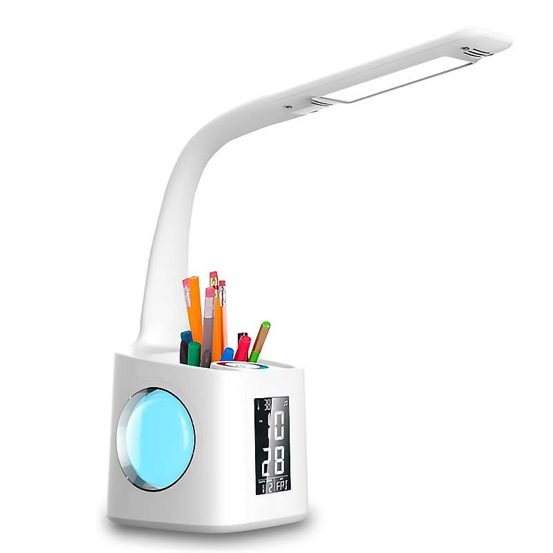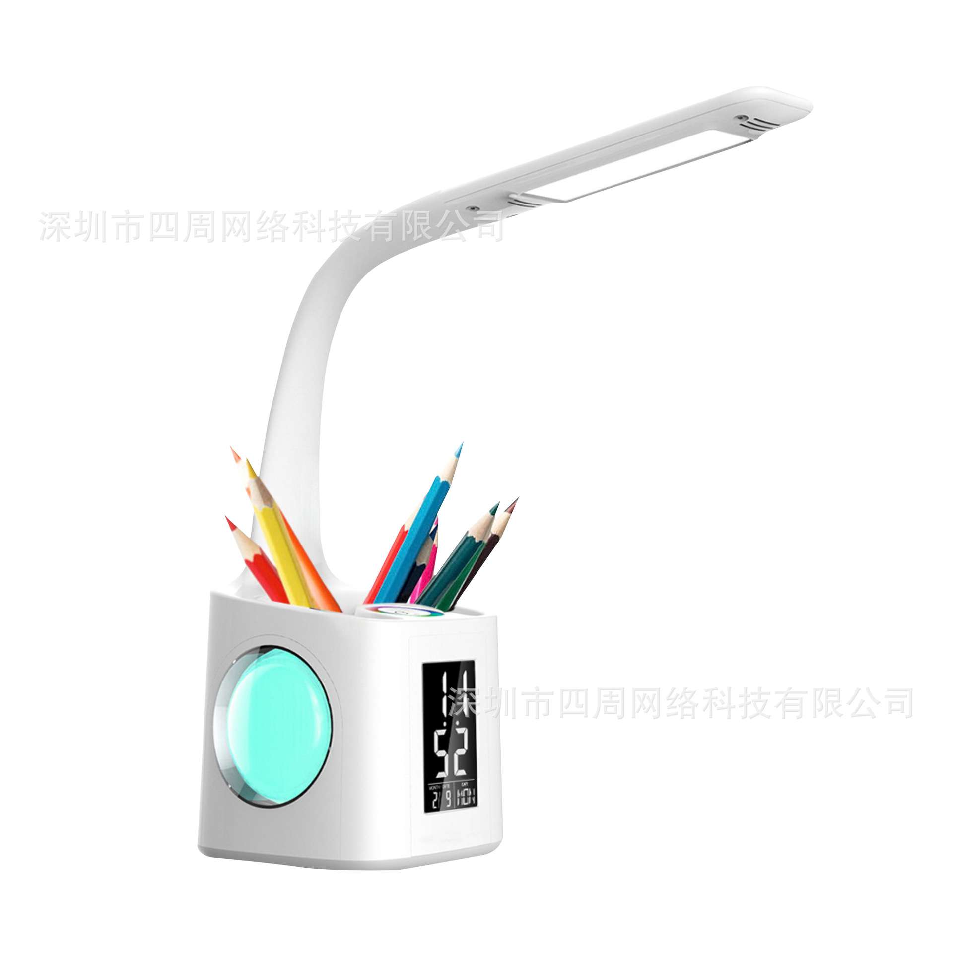 LED笔筒台灯充电插电两用万年历闹钟小夜灯全光谱可调光护眼