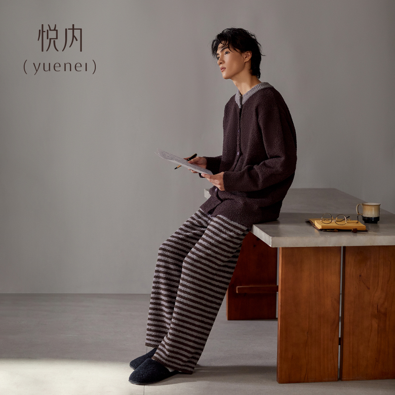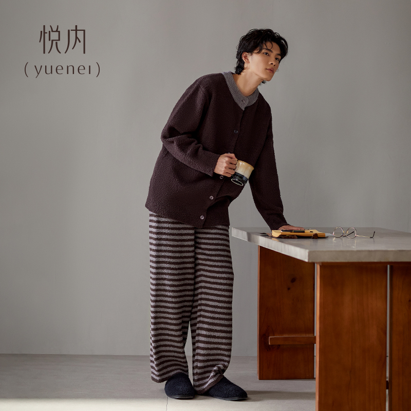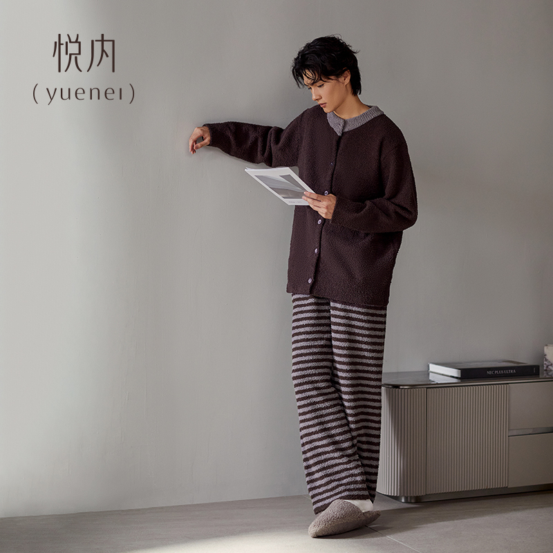 悦内半边绒睡衣男款秋冬季冬天加厚加绒珊瑚绒家居服男士保暖套装