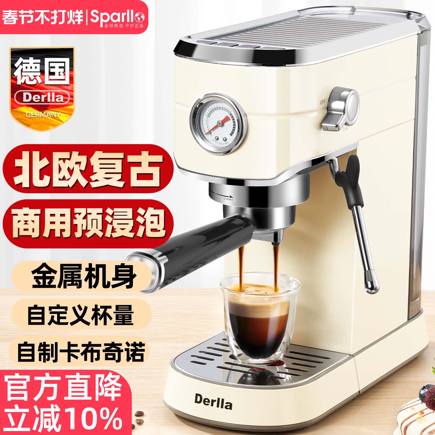 德国Derlla全半自动意式浓缩咖啡机家用小型奶泡机一体办公室迷你