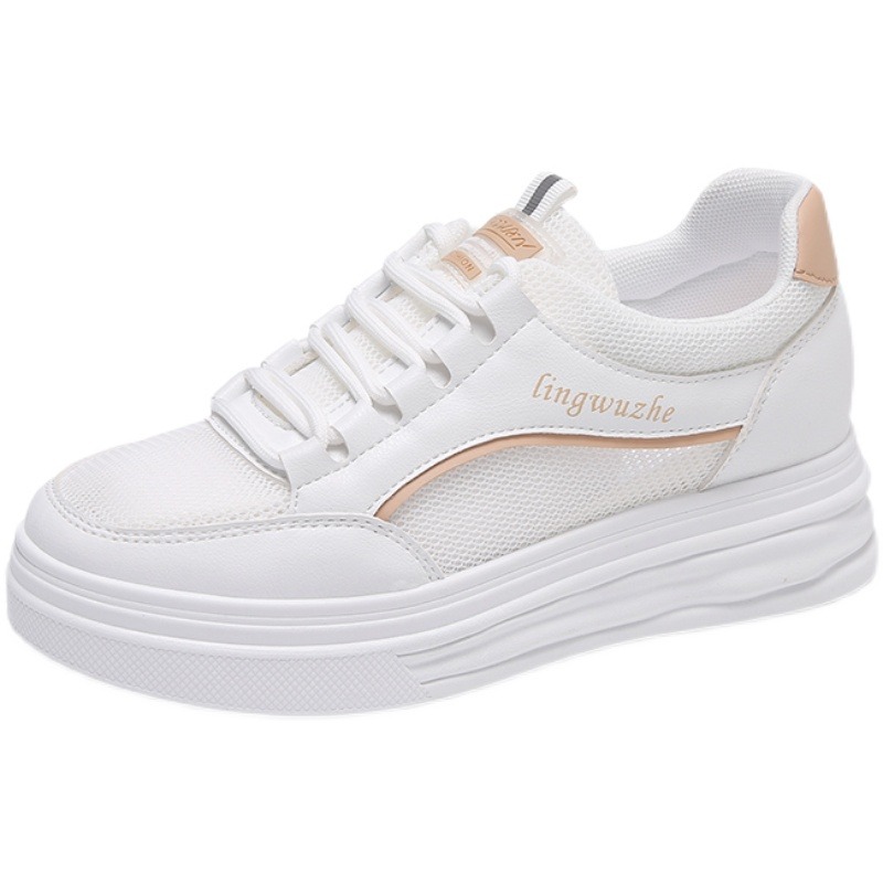 透气真皮小白鞋百搭休闲女鞋内增高小个子配裙子隐形显高网面板鞋