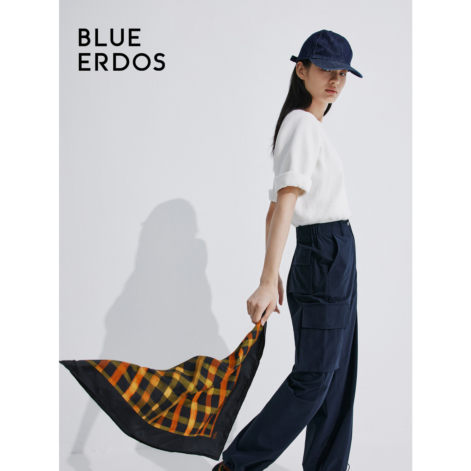 【真丝】BLUE ERDOS100%桑蚕丝黑橙格纹方巾B245S0002