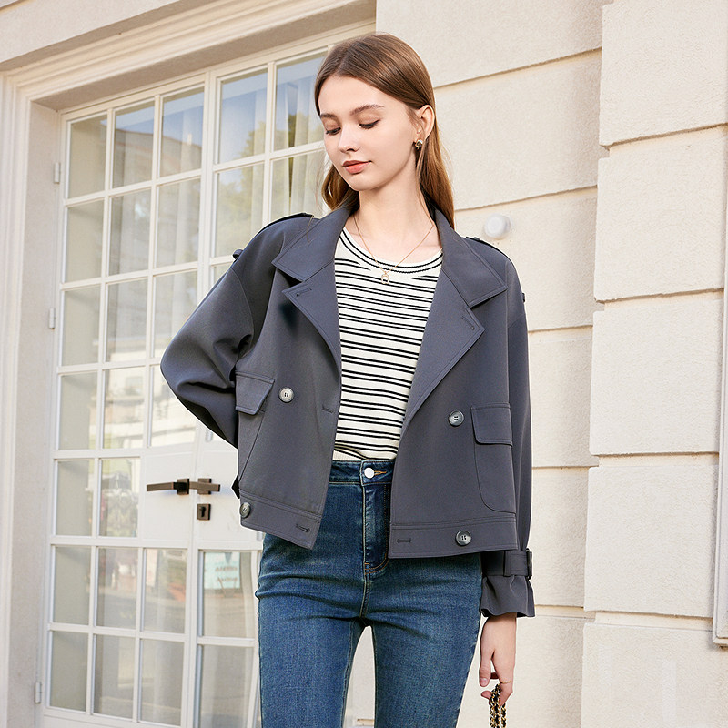 百图小个子工装时尚短款风衣外套