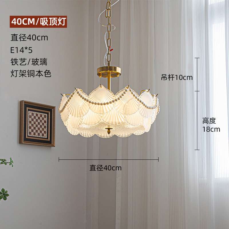 法式轻奢卧室吸顶灯现代简约餐厅书房灯网红款贝壳玻璃片LED灯具