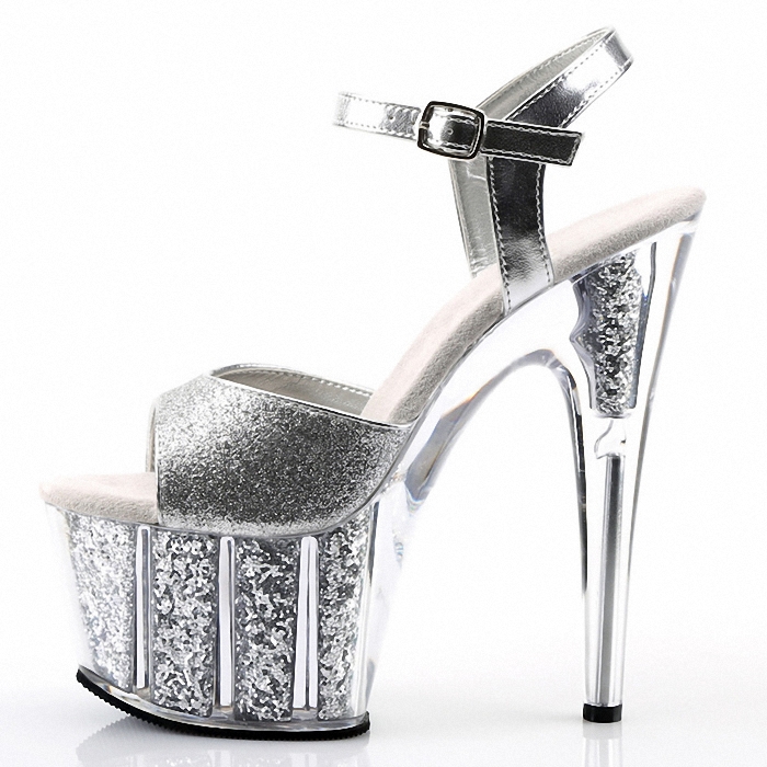 闪粉亮片大码欧美钢管舞高跟鞋17厘米超高跟鞋恨天高女防水台凉鞋