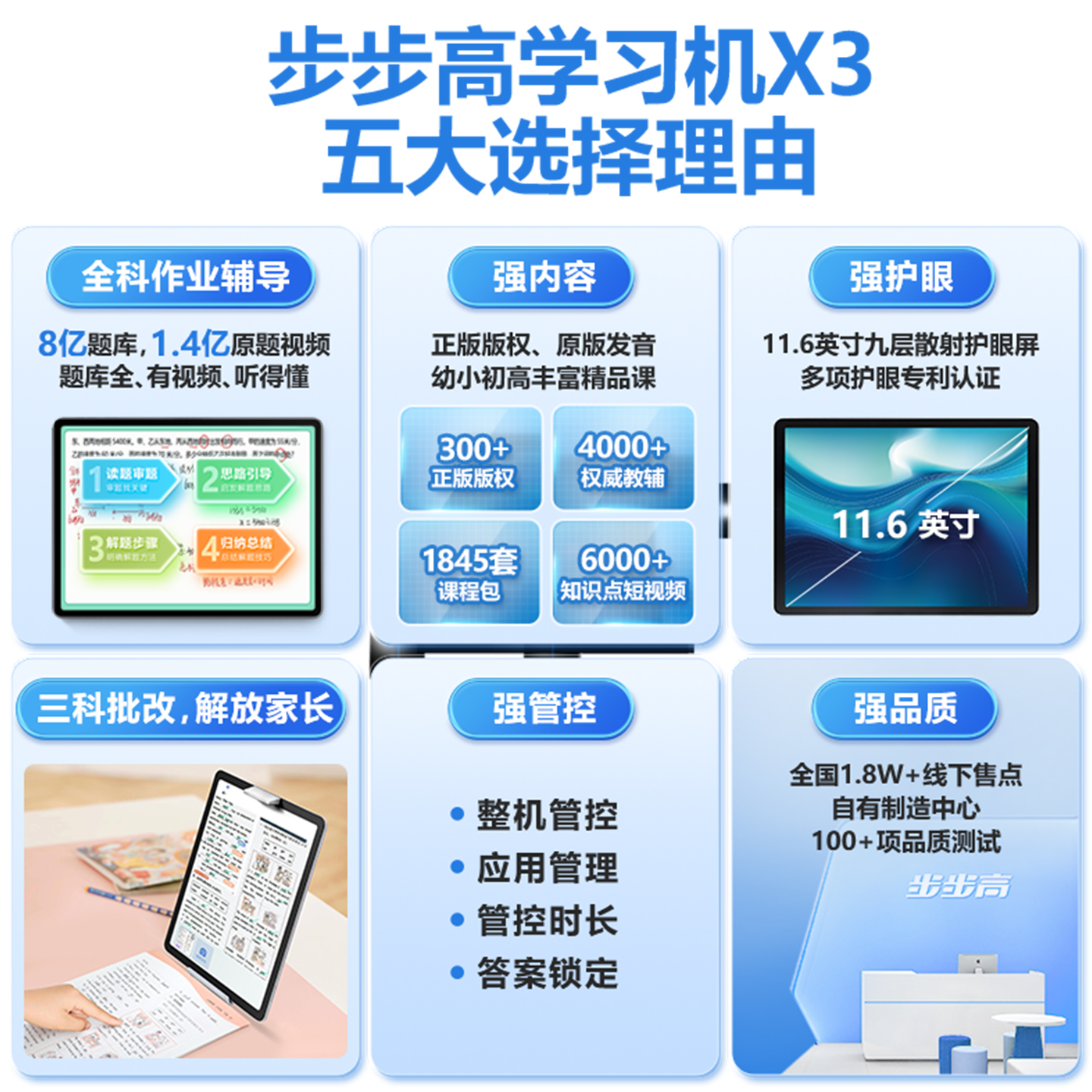 【官方旗舰】步步高学习机X3洪恩版学练家教机ai智能批改原题一年级到六年级英语专用小学初中高中通用正品