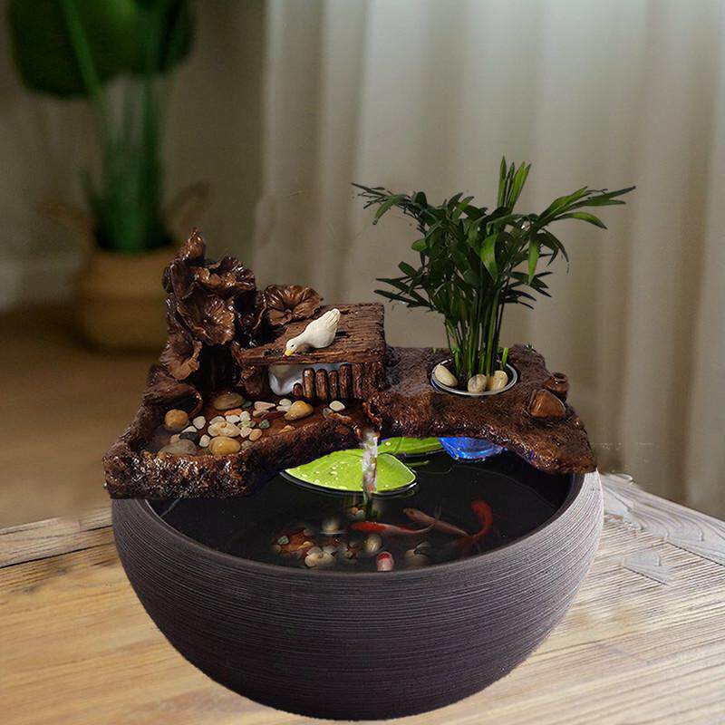 古法鱼缸流水过滤器循环系统创意摆件客厅造景陶瓷小型圆形金鱼缸