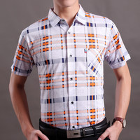 中年男士针织短袖衬衫夏装宽松大码短袖男装商务休闲衬衣爸爸装
