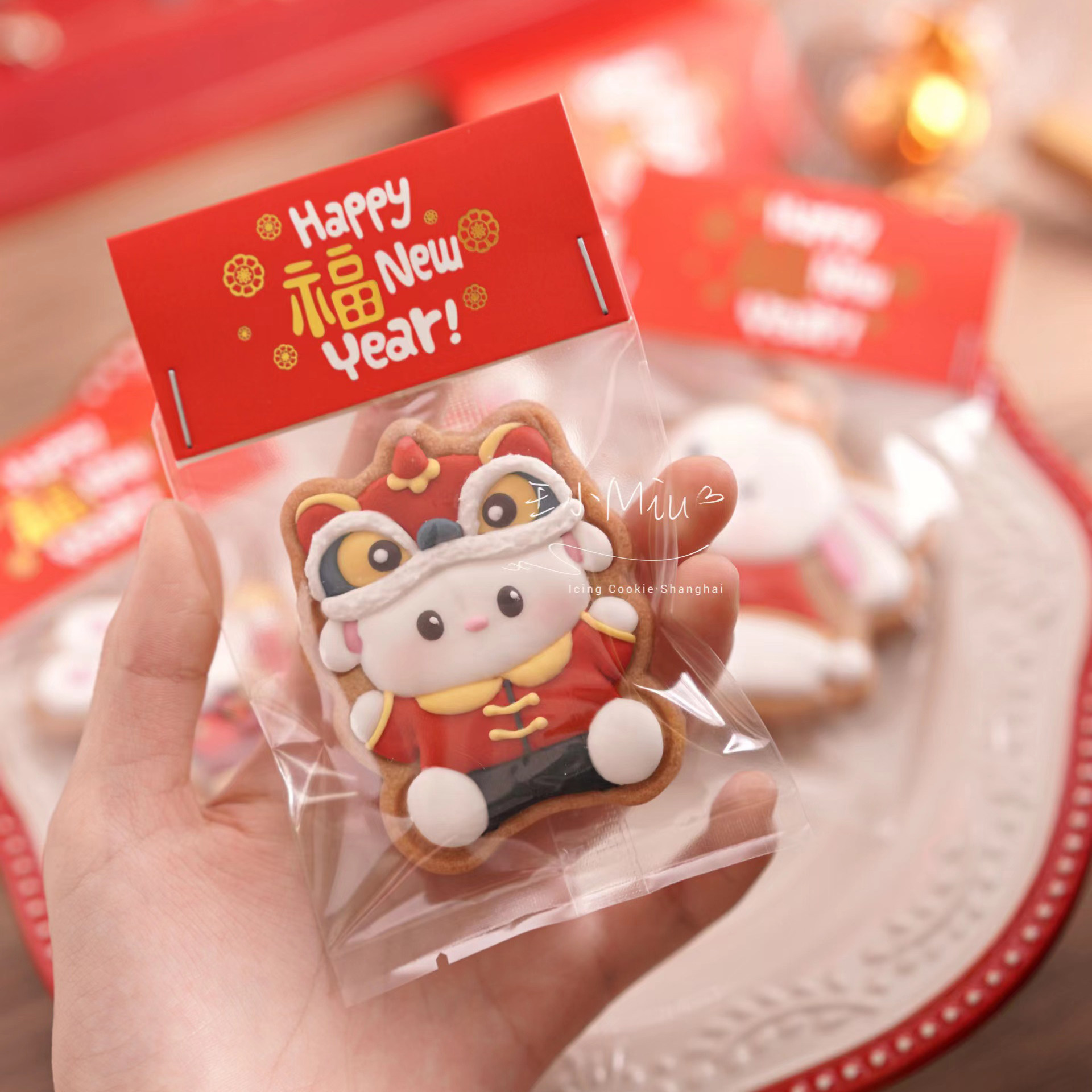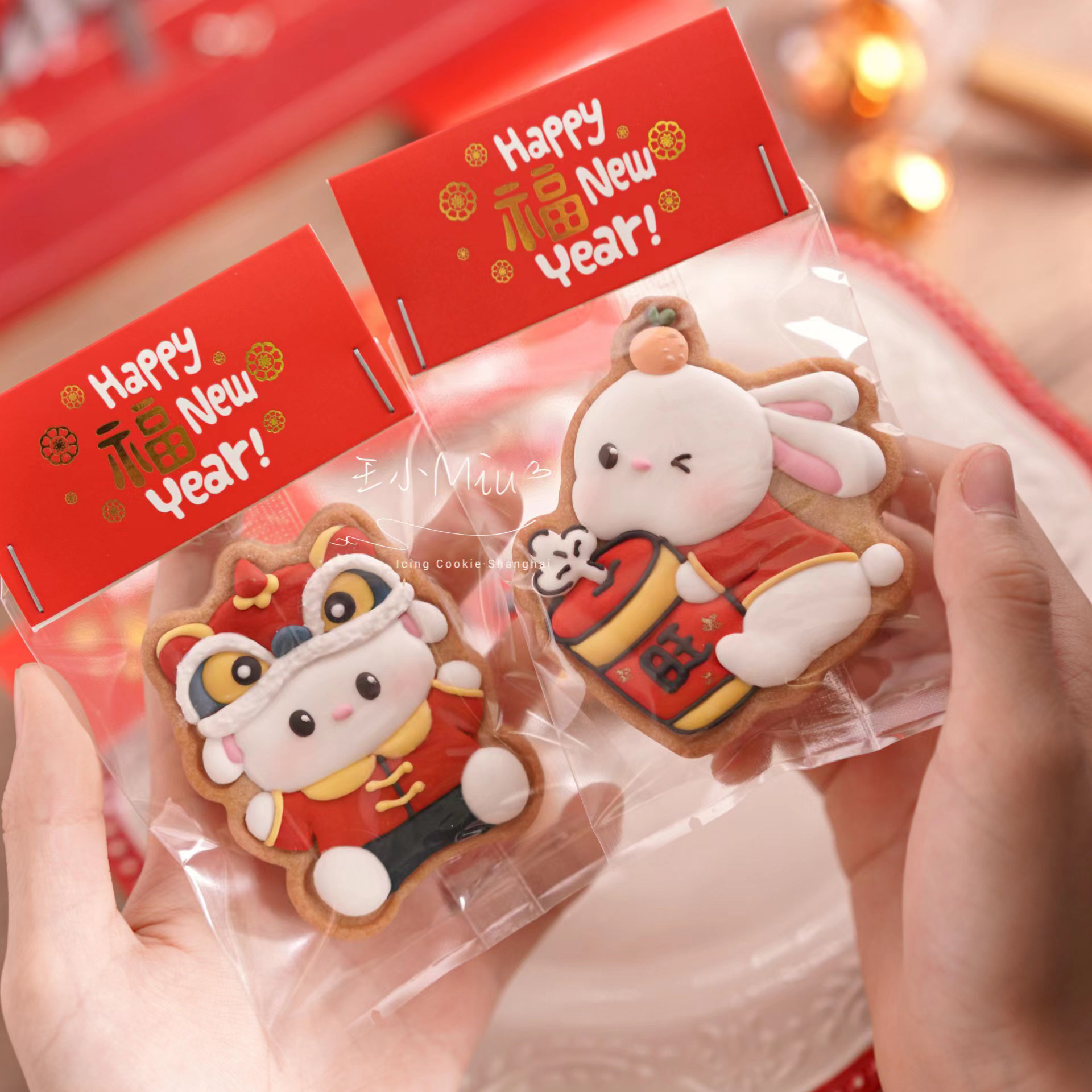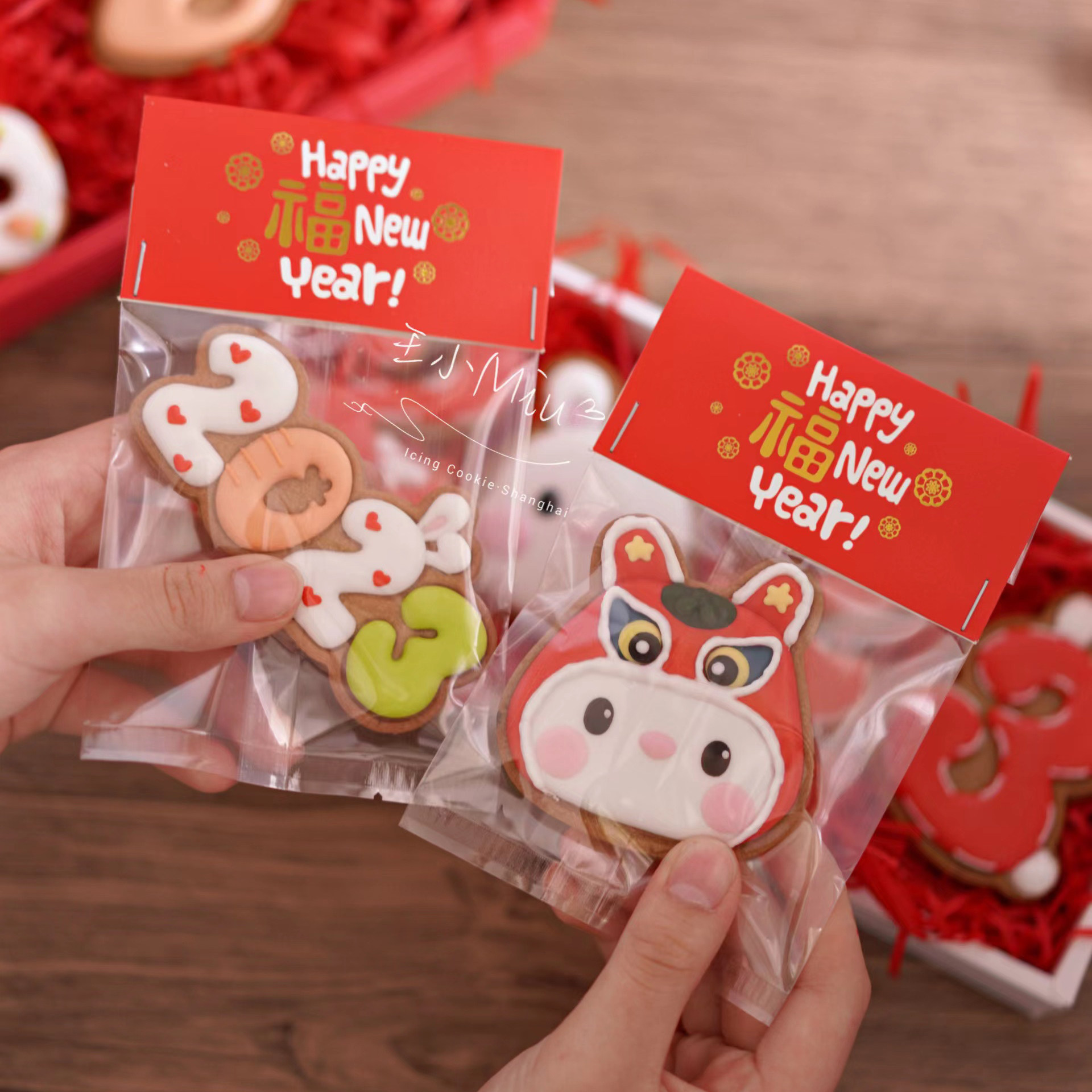 新年快乐饼干装饰页眉中国红happynewyear英文曲奇卡头烫金福卡片
