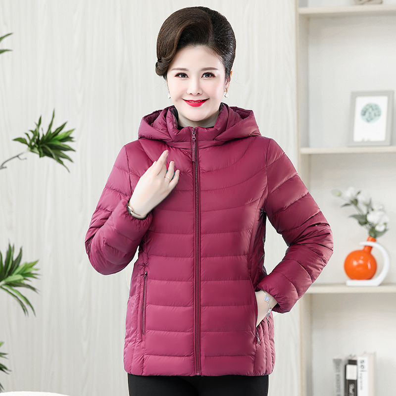 中老年轻薄款羽绒服女可脱卸拆帽加肥加大码妈妈装白鸭绒保暖外套