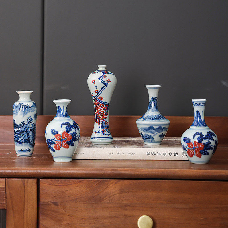 景德镇青花瓷手绘彩绘陶瓷花瓶博古架迷你花瓶小干花居家装饰摆件