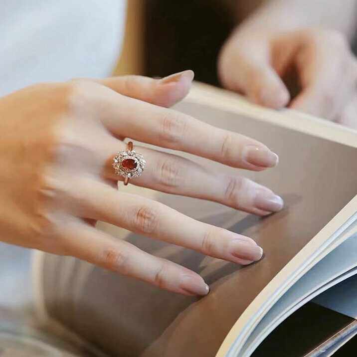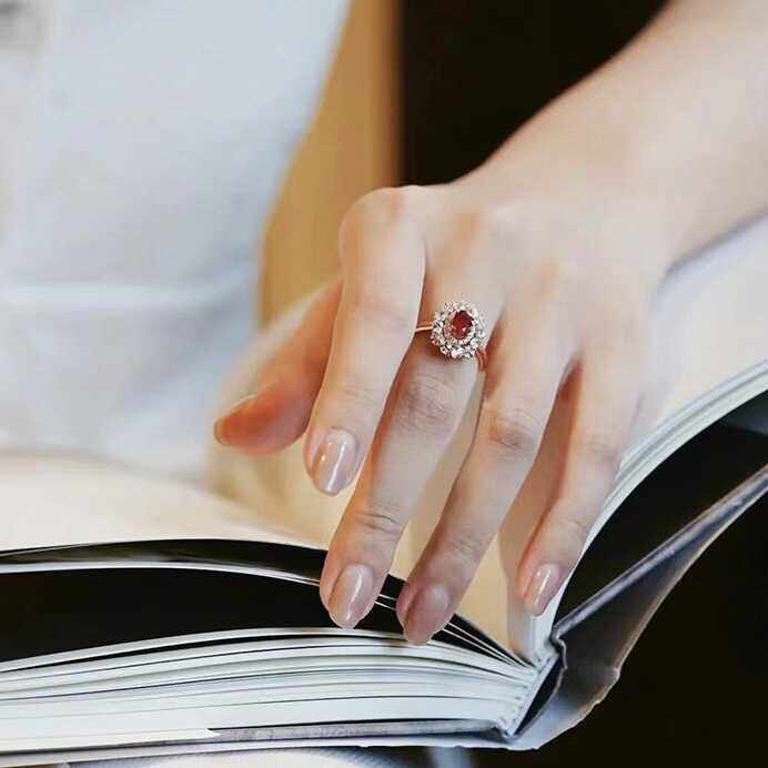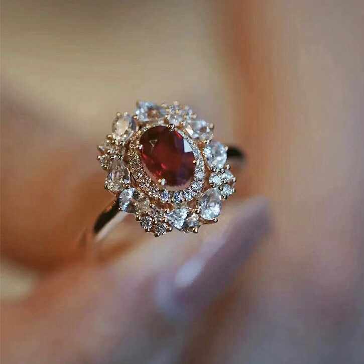天然红宝石开口戒指女18K金镶嵌钻石彩宝鸽血复古法式高级感指环
