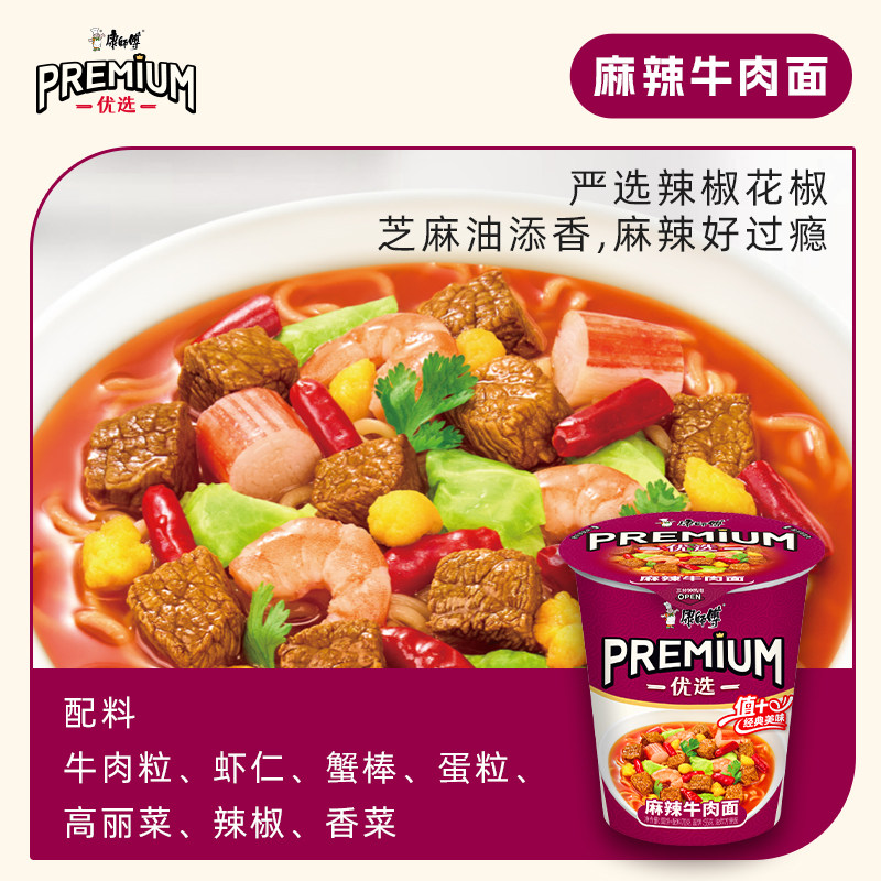 康师傅方便面premium杯免撕撒料优选杯丰盛泡面宿舍夜宵速食官方