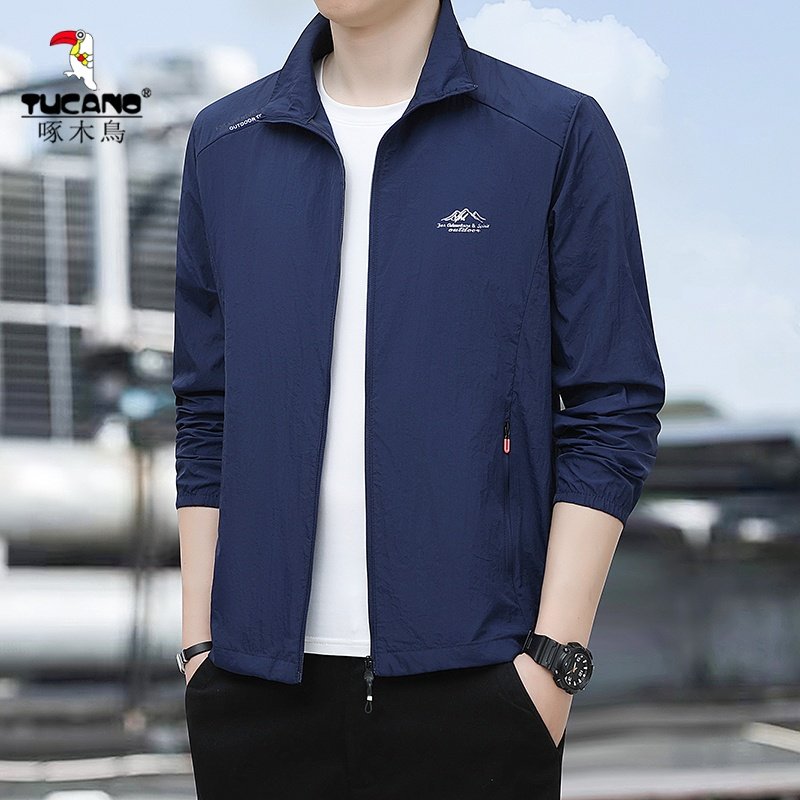 啄木鸟防晒衣男款无帽夏季轻薄冰丝透气爸爸装钓鱼服防紫外线外套