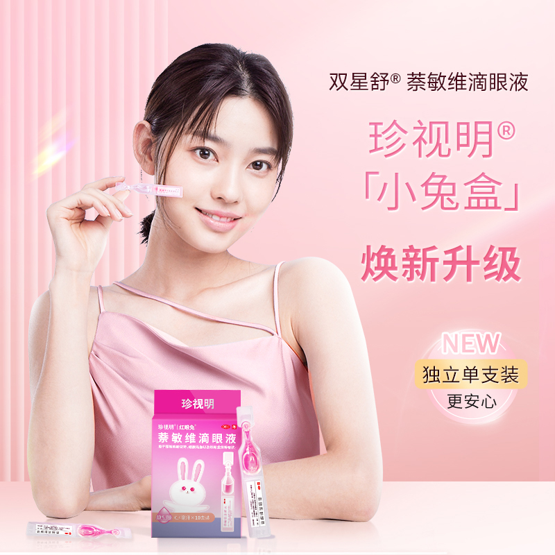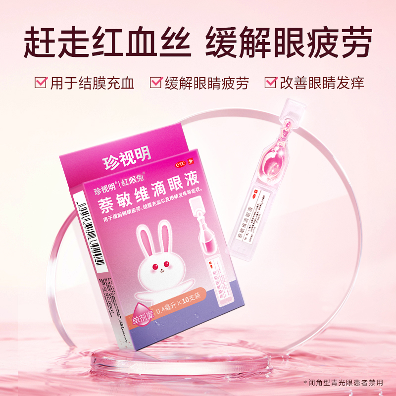 珍视明红眼兔萘敏维滴眼液10支装去红血丝缓解眼睛发痒疲劳眼药水