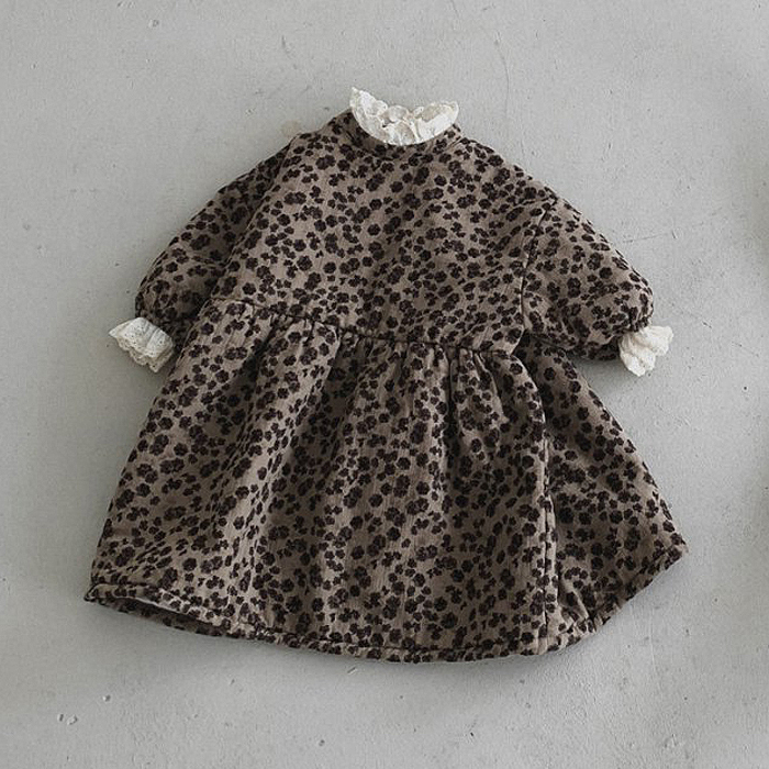 女童连衣裙秋冬2025新款韩版童装小童洋气宝宝碎花夹棉爬服姐妹装