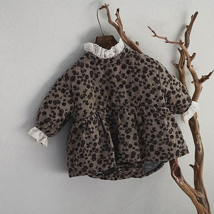 童装秋冬韩国碎花夹棉爬服姐妹装