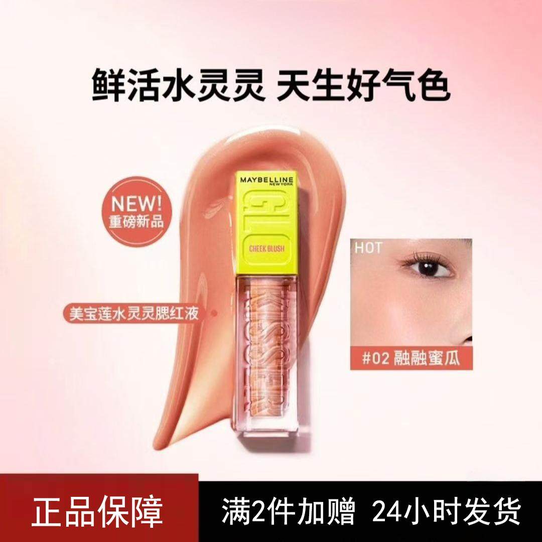 美宝莲水灵灵腮红液高光液膨胀色修容水润提亮液细腻服帖自然显色